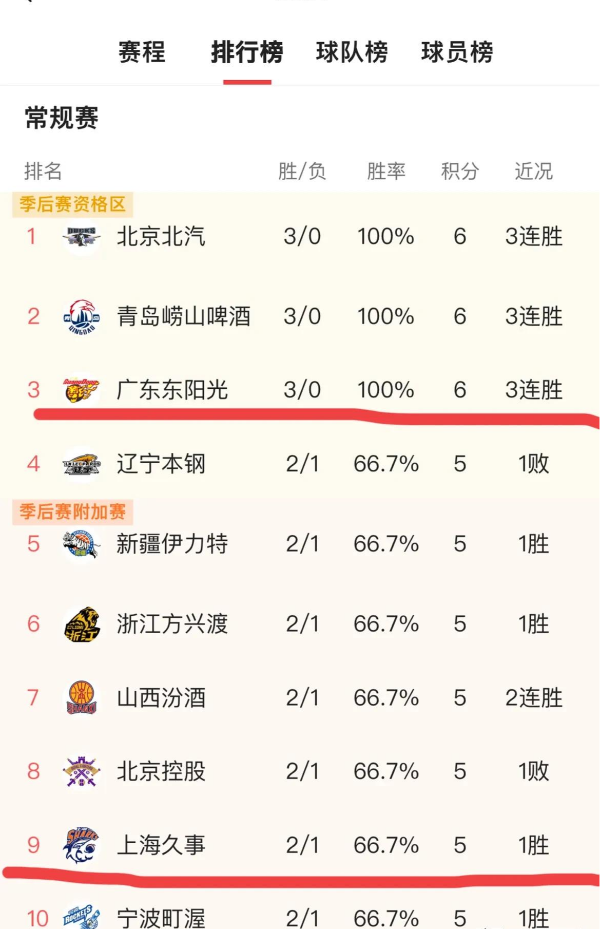 随着这两场比赛的结束。CBA的新赛季排行榜迎来更新,目前广东男篮拿到3连胜的战绩,积分是6分排在第三名。上海男篮两胜一负,积分5分排在第9名。