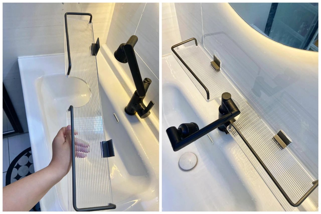 若你家的镜柜已经安装了,可以结合自己家的尺寸,网购一个成品置物架装上去,实用性同样很强。
