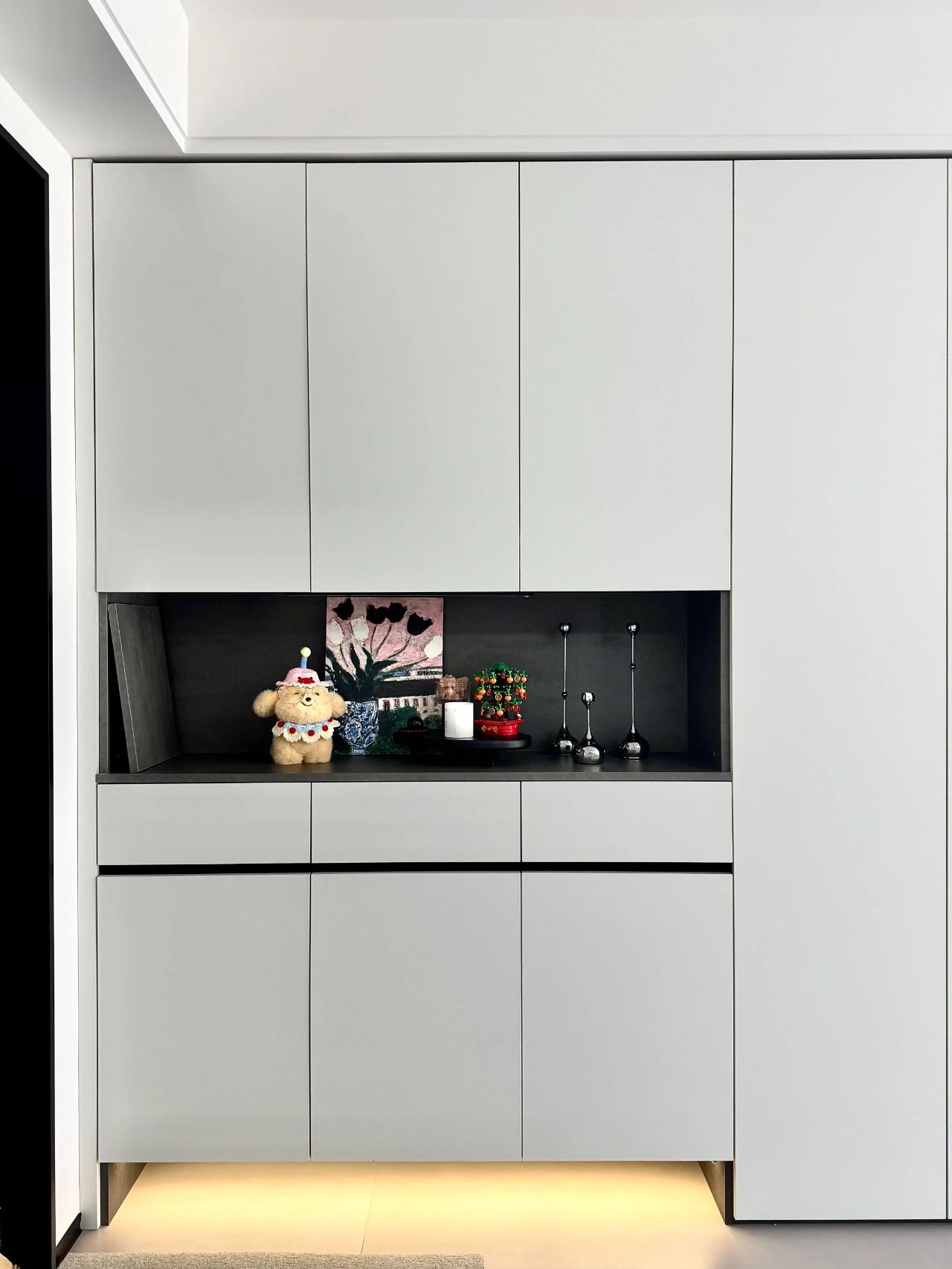 其实,柜子说到底还是要遵循“藏七露三”的原则来设计,全封闭固然整洁省心,但合理的开放格设计,却可以让生活更有温度和弹性。