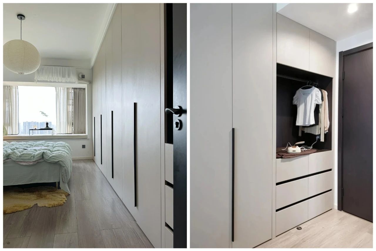 衣柜,作为卧室里的主要收纳区,大多数人在定制时都会安装上柜门,避免衣物落灰,看起来也更整洁。