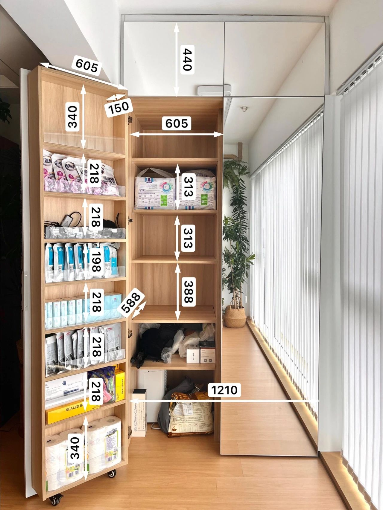 所以,在这种情况下,我们就可以通过柜门开放格,来提升柜子的收纳力和使用效率。