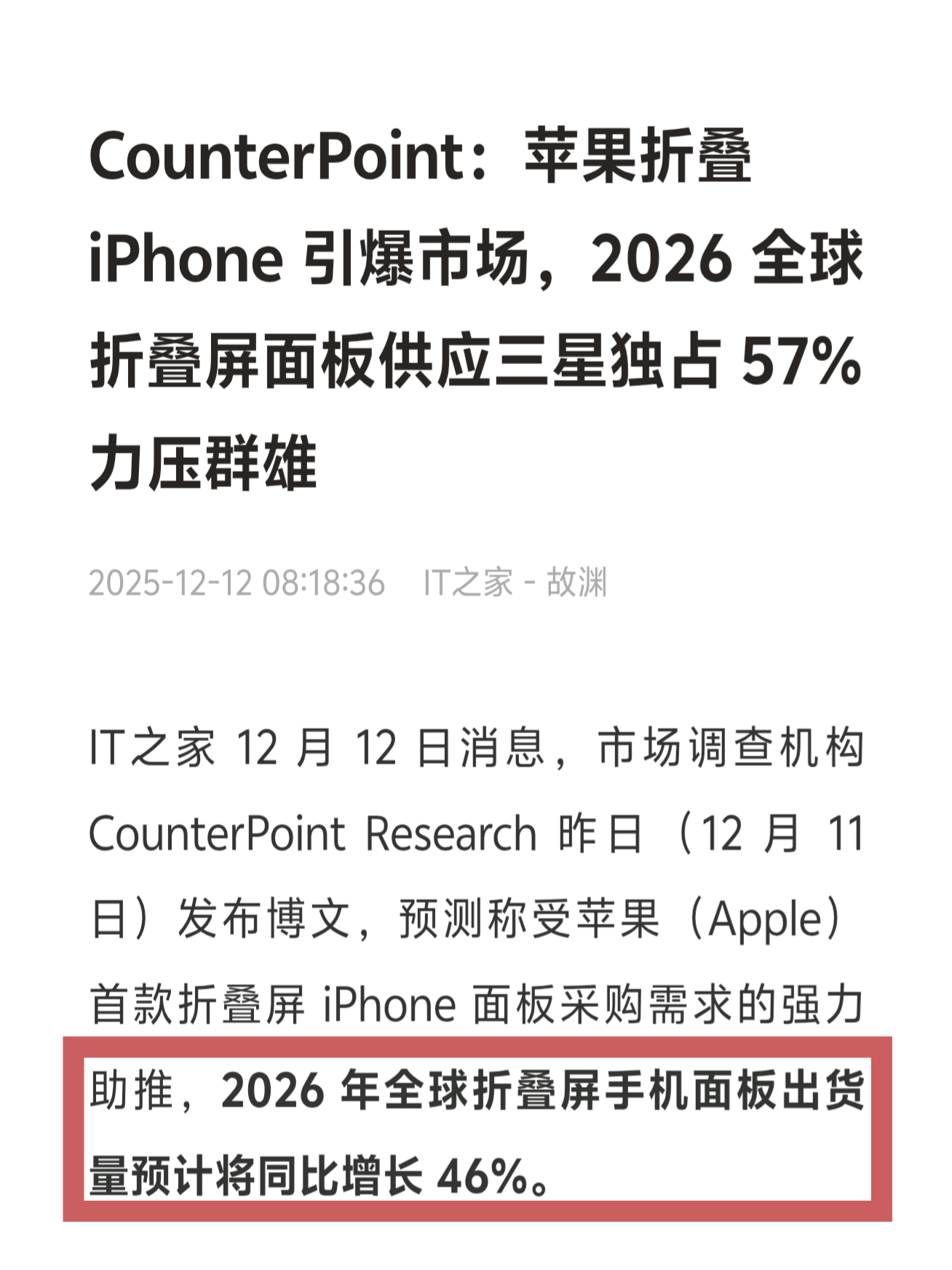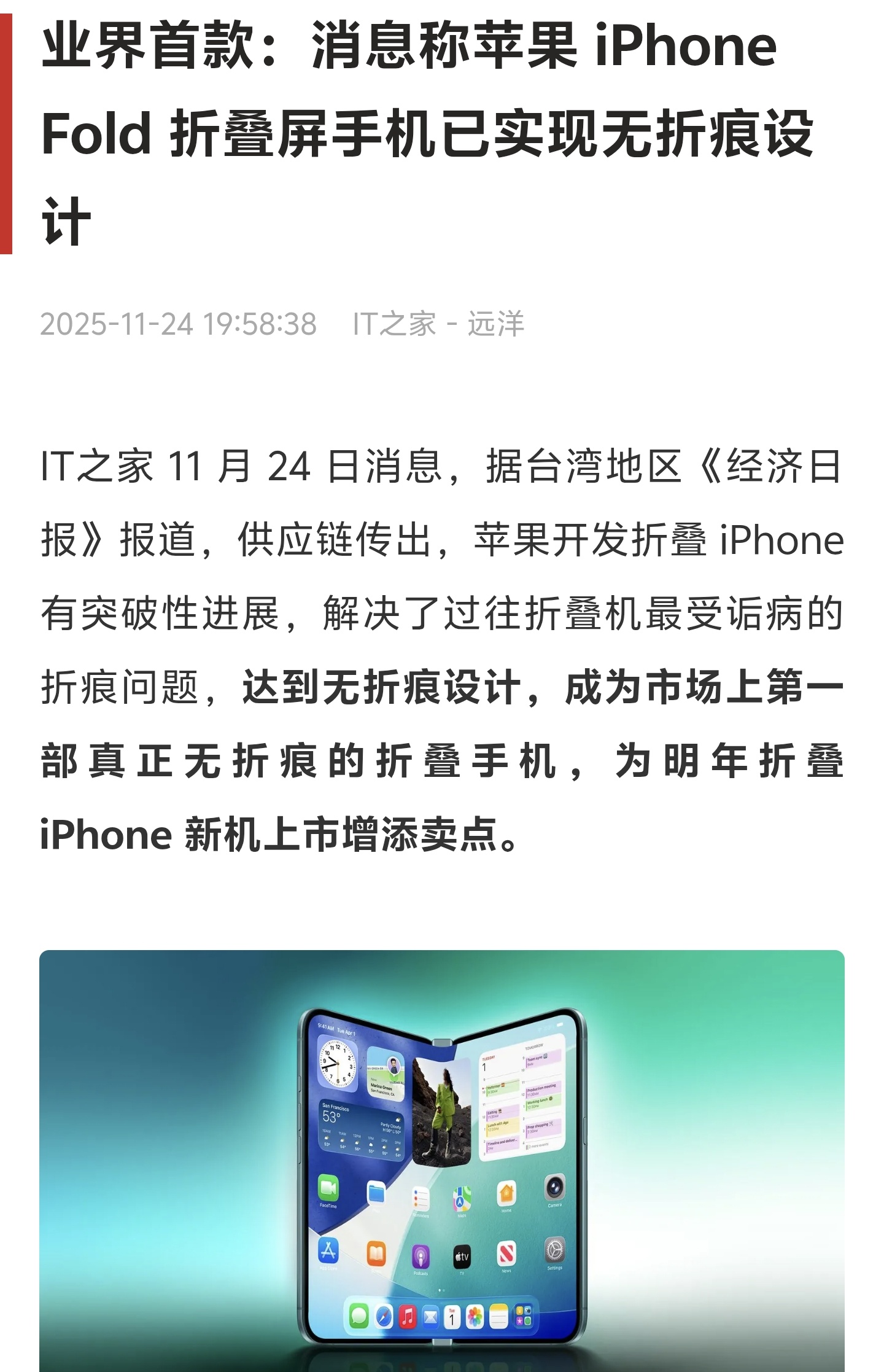 3.“无折痕”会被当成卖点:爆料里反复强调“折痕很轻微/接近看不见”,这其实也是折叠屏体验里最影响“高级感”的点之一。所以综合来看,iPhone折叠屏所采用的比例、尺寸都瞄准了分屏、多任务、阅读和表格等更适合大屏的体验。