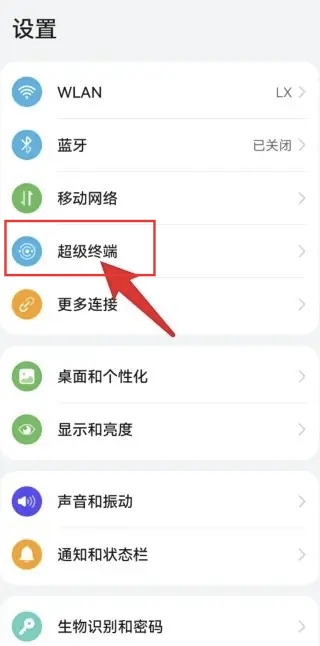首先打开华为手机进入设置页面,点击【超级终端】。