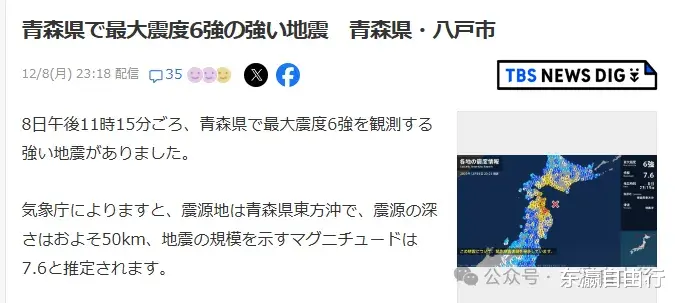 日本又地震了。这次发生在青森县,7.6级。笔者在东京,也感觉到轻微晃动,而且时间比较长。