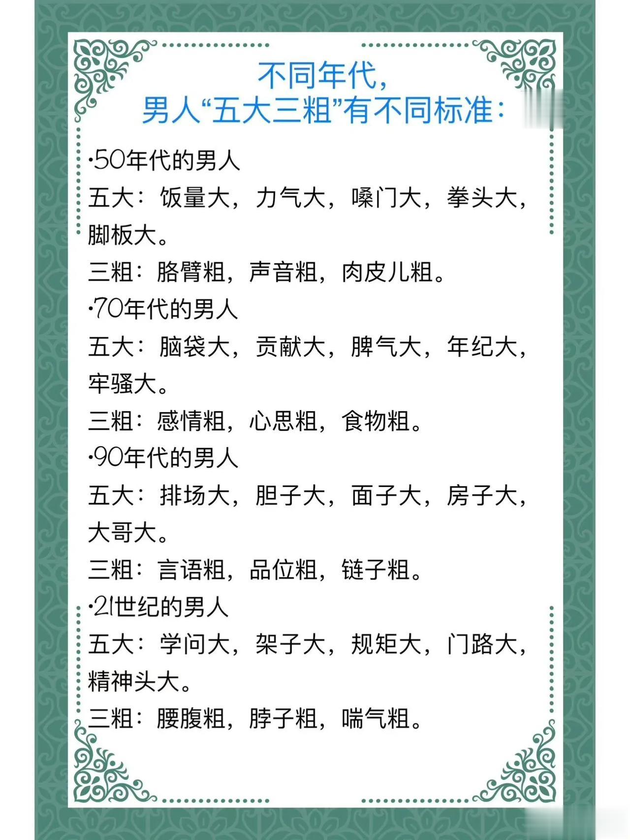 五大三粗是哪五大?哪三粗?答案不唯一 七情六欲是指哪七情,哪六欲?