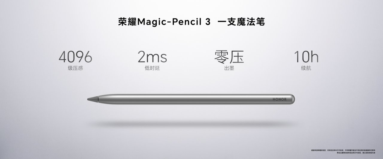 荣耀Magic-Pencil 3拥有 4096 级压感,2ms 低时延,零压出墨感应以及 10h 的超长续航,一支魔法笔助力灵感创作;