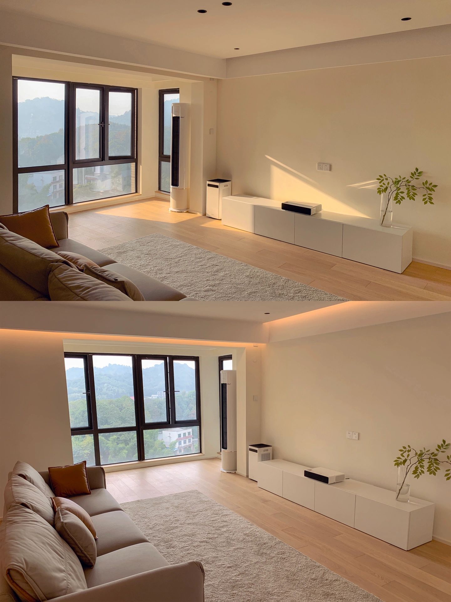 随着地板完工,家具进场,这套清爽的原木小屋有了雏形,面朝山林,足不出户看遍四季,期待它的逐渐完善了!