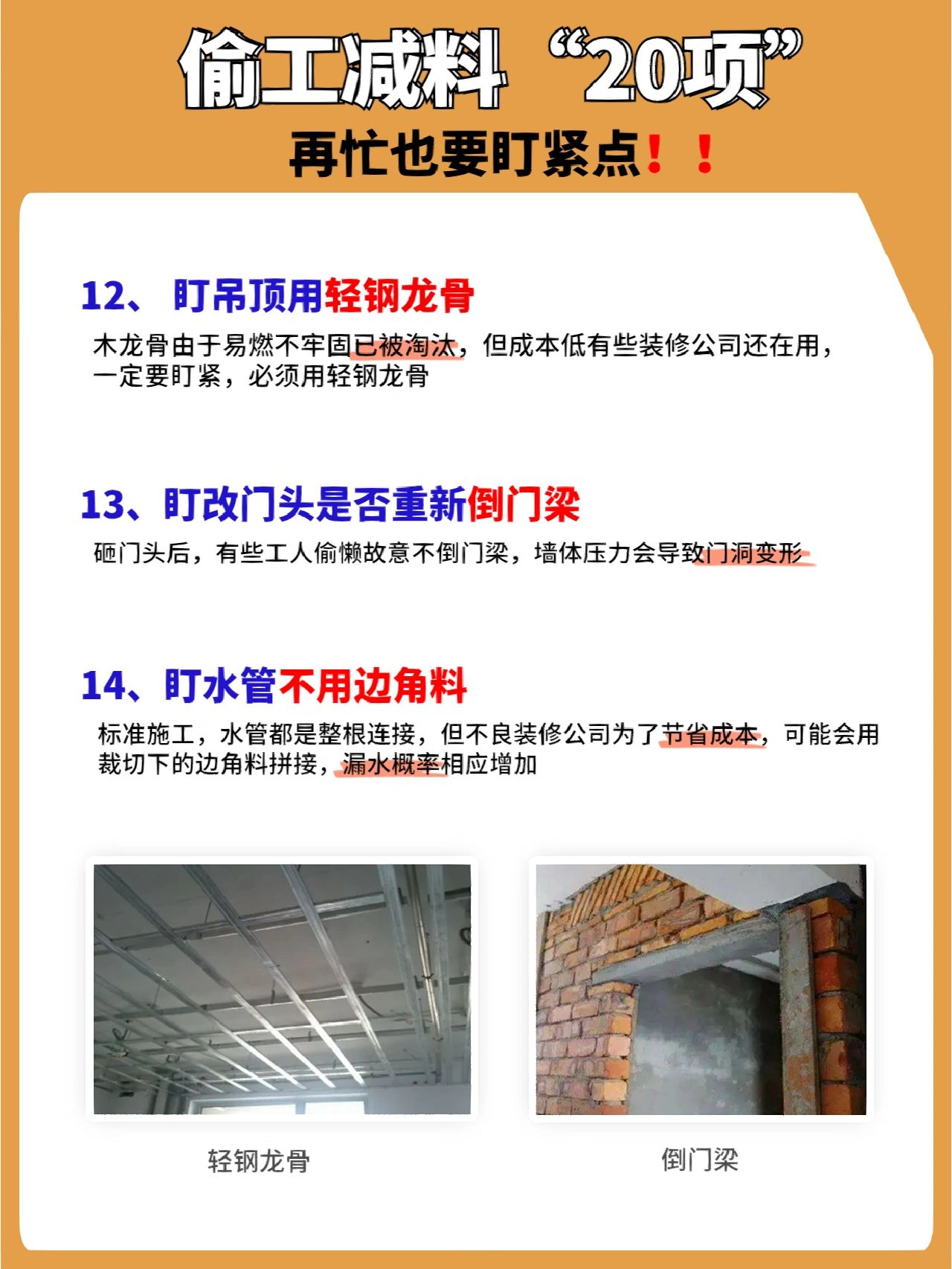 正所谓“明枪易躲、暗箭难防”,作为装修新手,即使是天天披星戴月来监工👀,你若是不懂这些偷工减料弯弯绕的把戏,大概率也就监了个寂寞😤