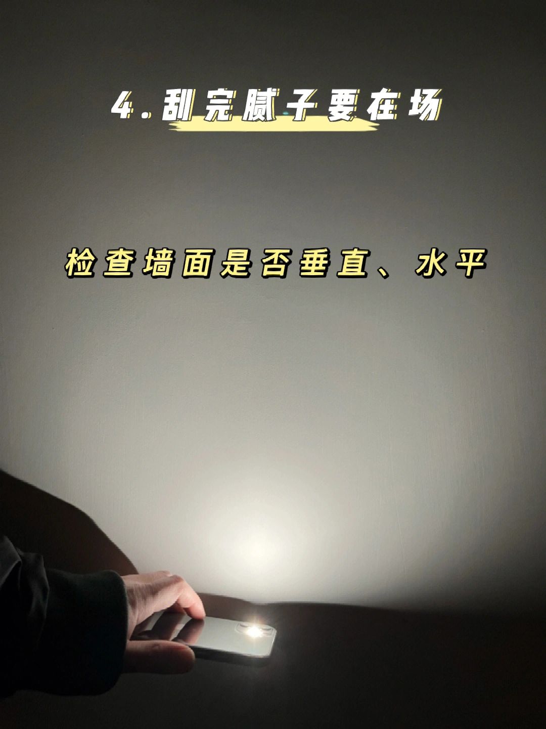 4️⃣刮完腻子要在场,检查墙面是否垂直、水平