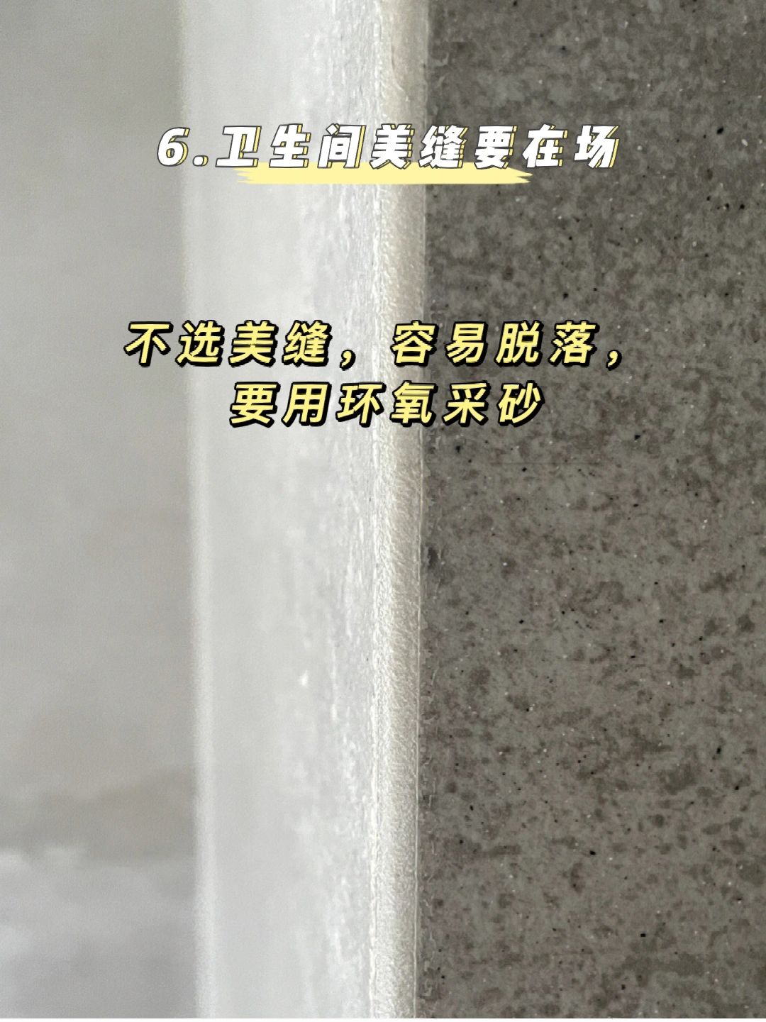 6️⃣卫生间美缝要在场,不选美缝,容易脱落,要用环氧采砂