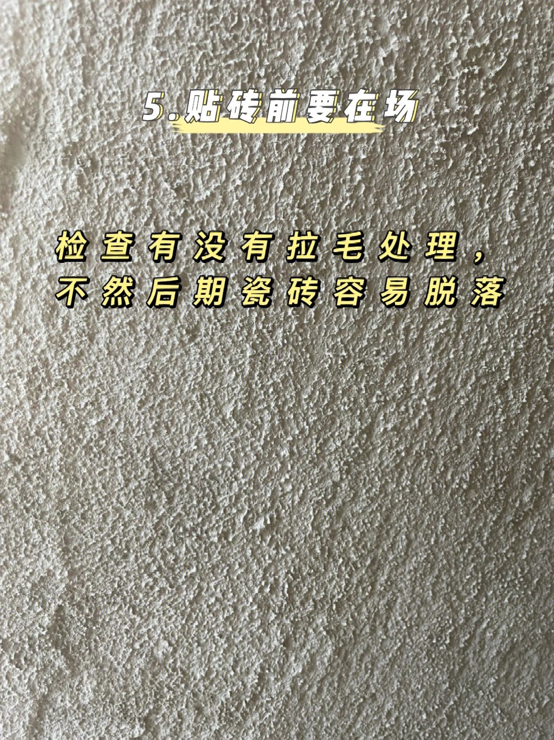 5️⃣贴砖前要在场,检查有没有拉毛处理,不然后期瓷砖容易脱落
