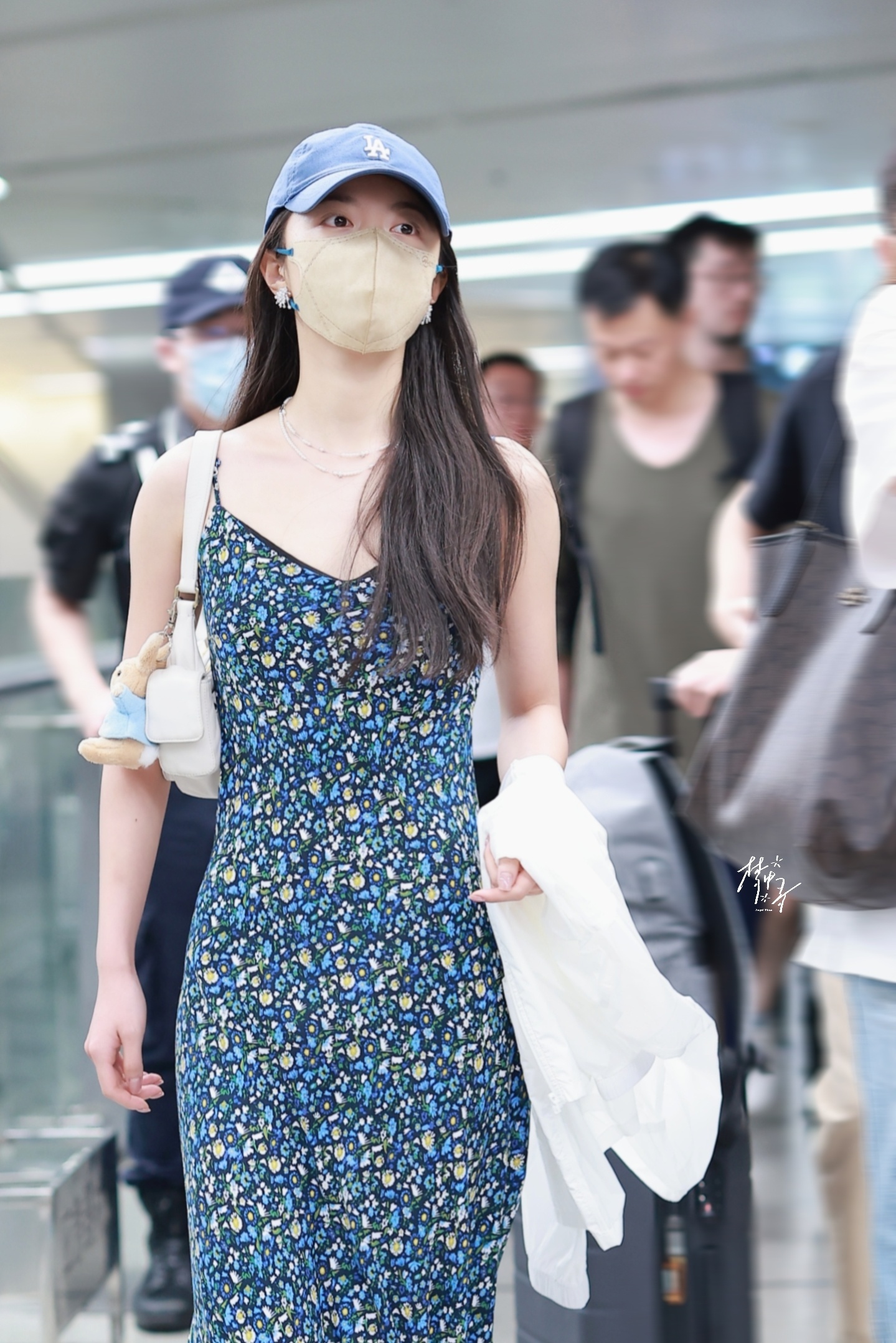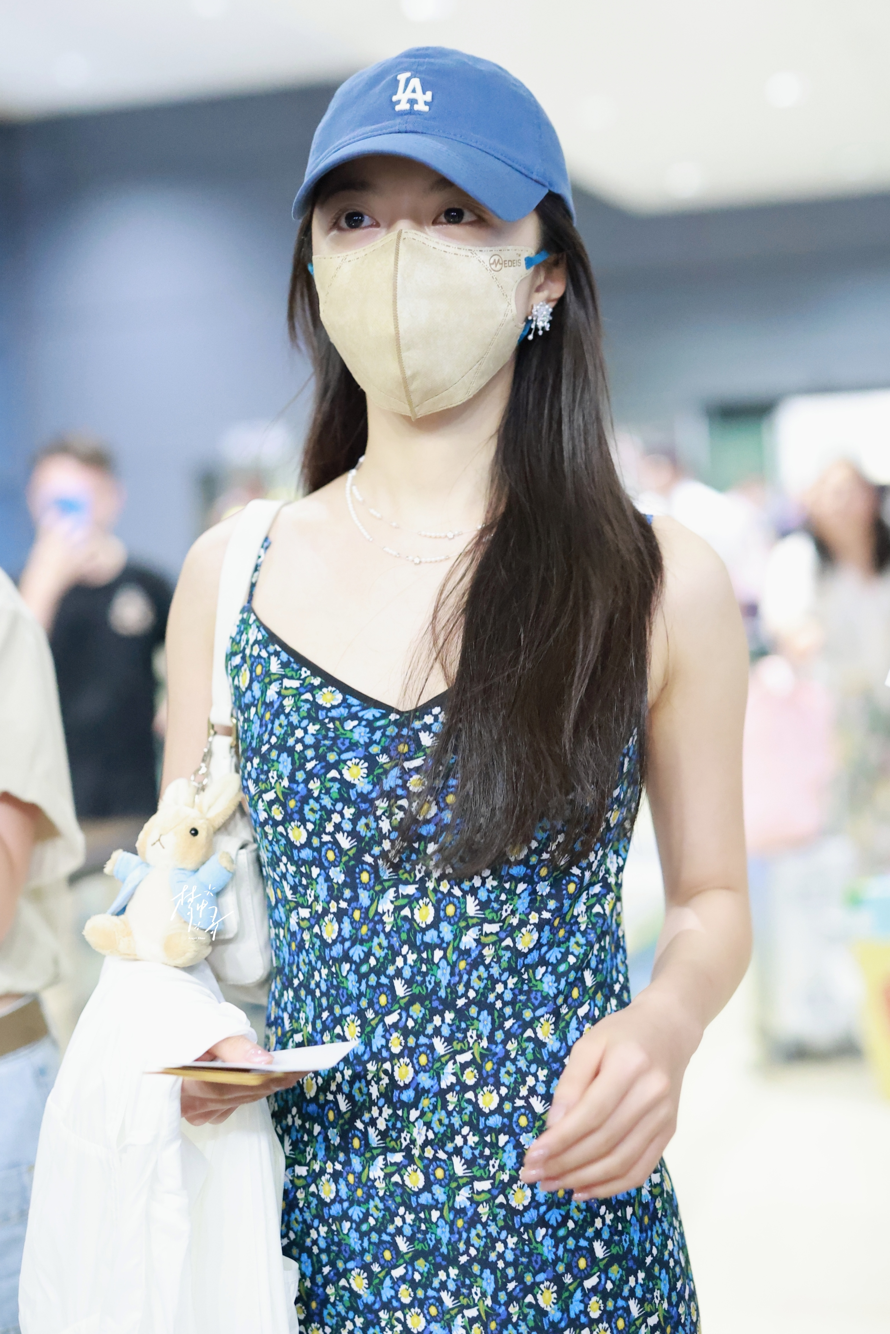 赵今麦机场私服,穿了一件吊带碎花裙! ​​​