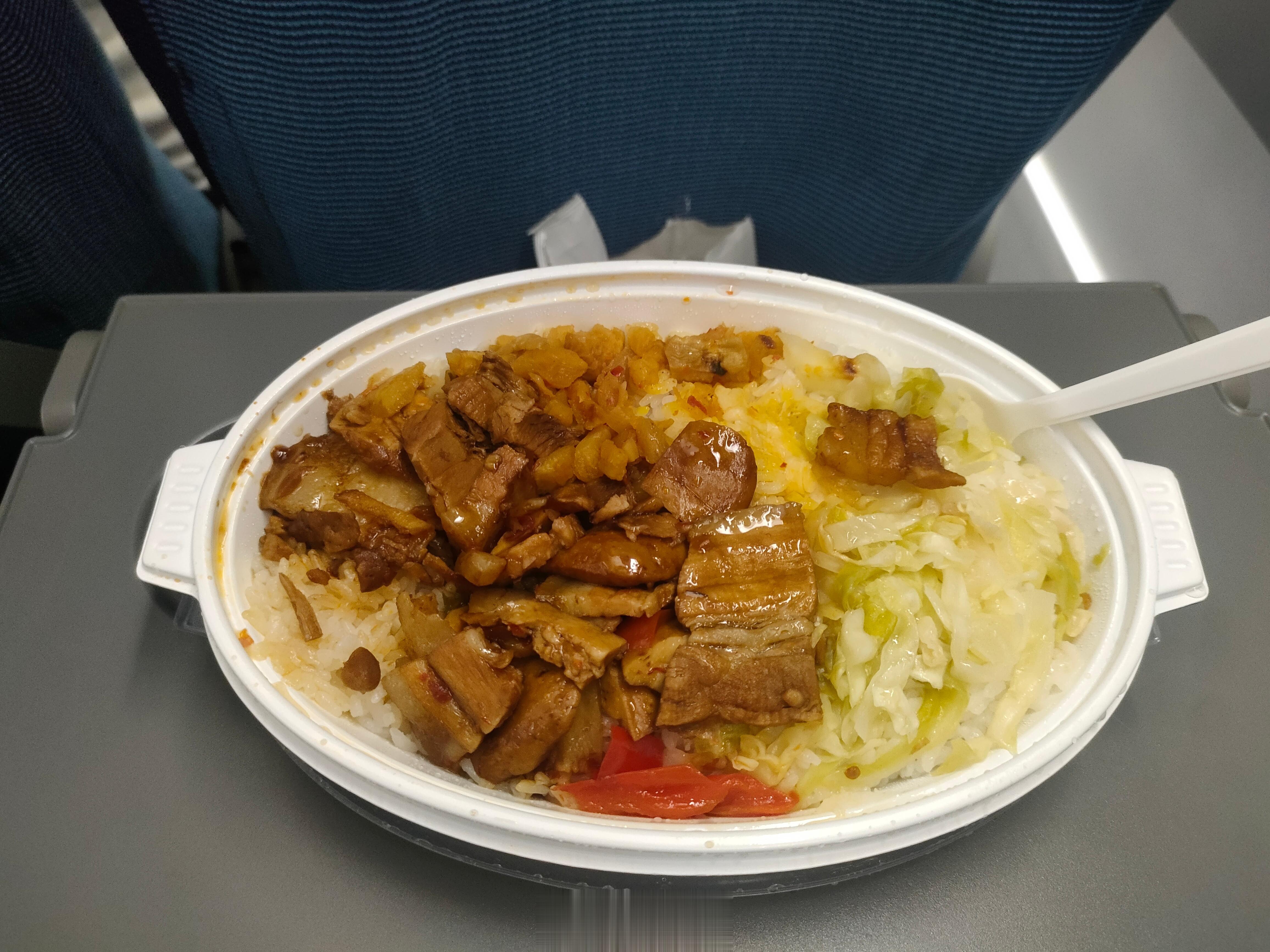吃后贤者时间小思考:为什么推车上没有现成的15元套餐?我想并不是工作人员不放,而是这盒饭比较受欢迎,极可能是被前车厢的乘客买光了。