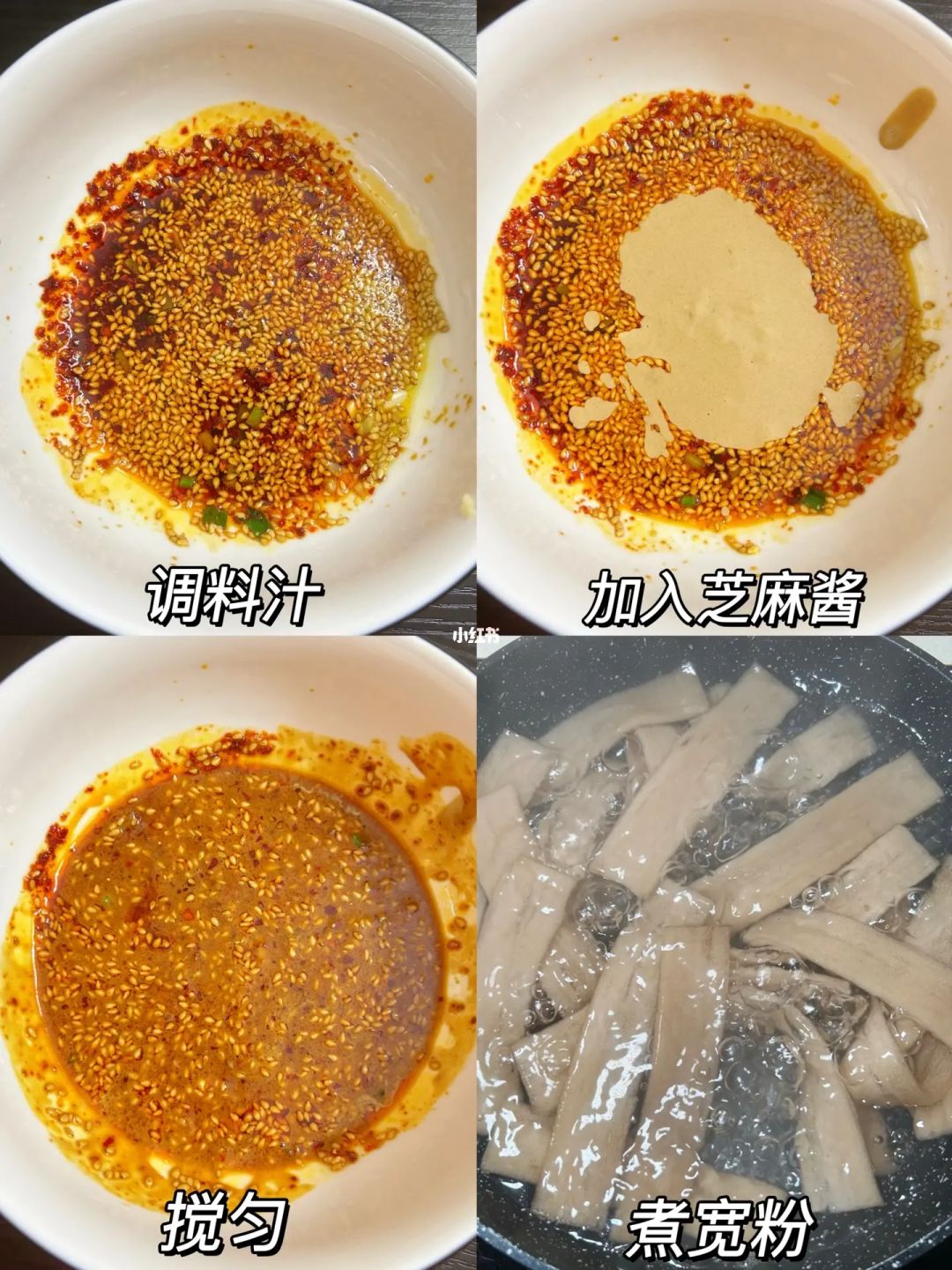 这个流汁宽粉真的绝了!! 太好吃啦!! 做法也很简单!!! 1⃣️碗里加入蒜末、葱花、辣椒粉、白芝麻、盐、鸡精,浇上热油之后加入生抽、陈醋、香油,加入两大勺芝麻酱搅匀 2⃣️煮宽粉,煮好之后捞入料碗里拌匀 完成✅ 太香啦!! 姐妹们都去试试!!