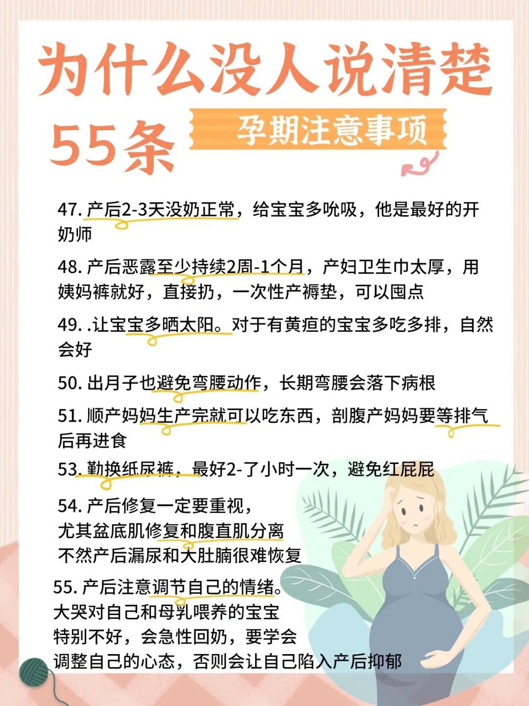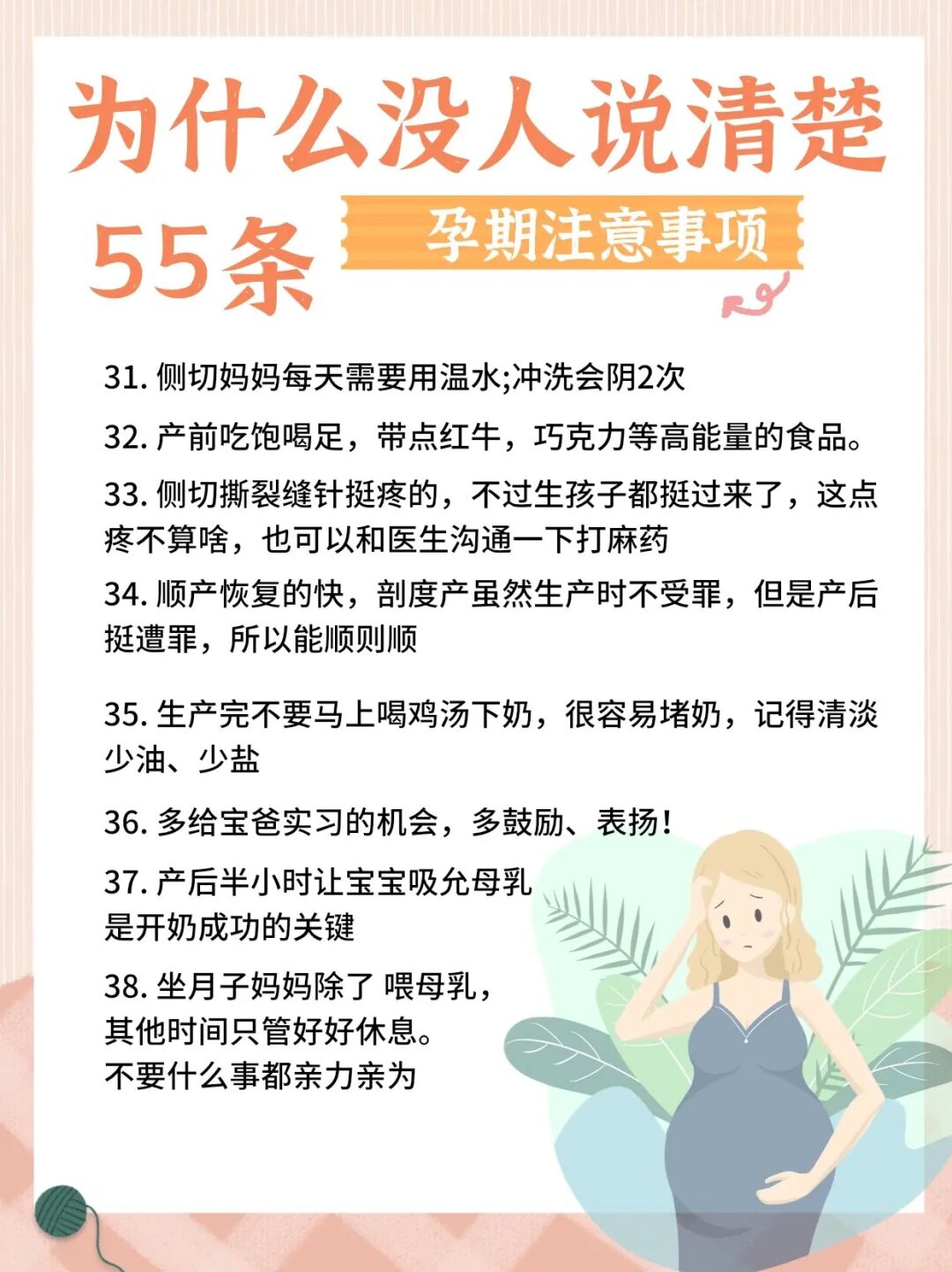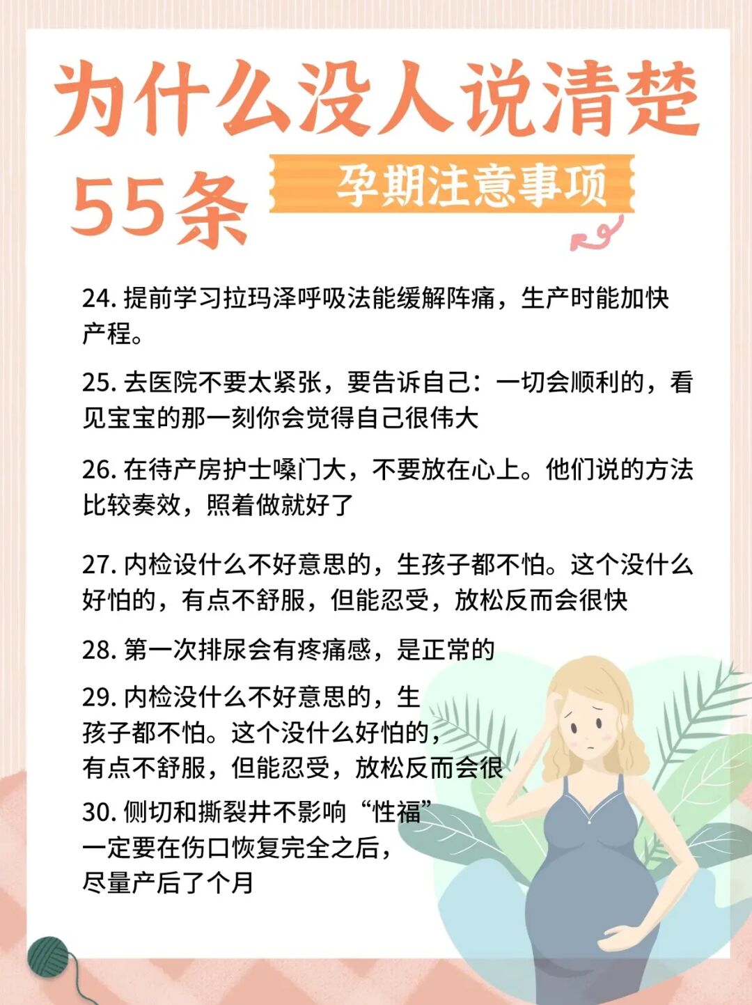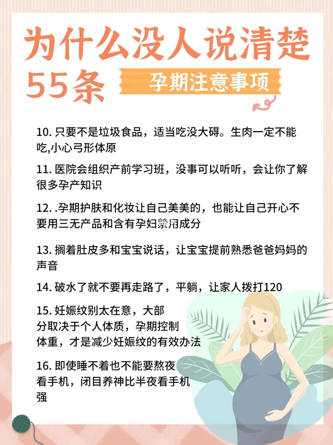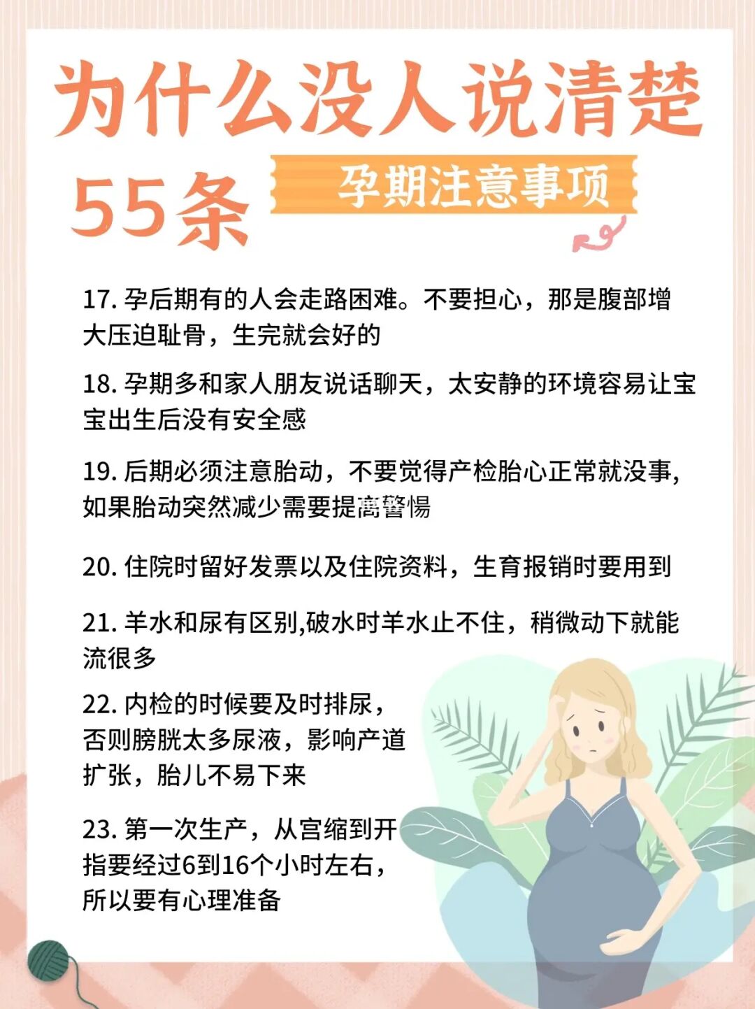 😟想起我刚开始怀孕的时候,真的是一问三不知,什么都不懂 每天除了焦虑就是失眠 当时我都一度怀疑自己,到底做好准备了没有 心里一点底了也没有 好在 作为母亲的伟大 一点点的成长,到底问经验的姐妹 让我看到自己也能合格成为一位妈妈 为了其他新手孕妈妈不迷茫 我特意把我孕期经验一一例出来 请看上图