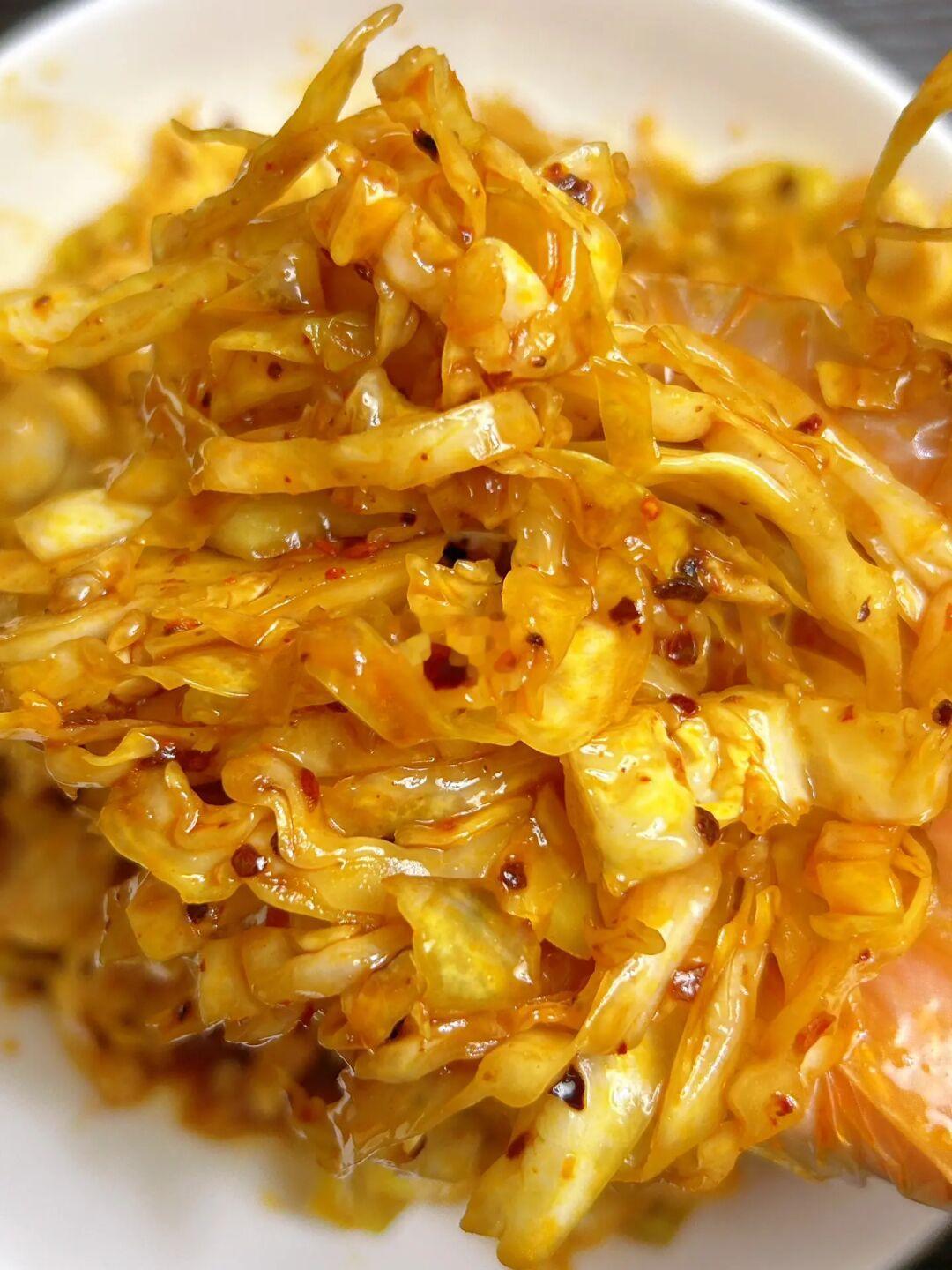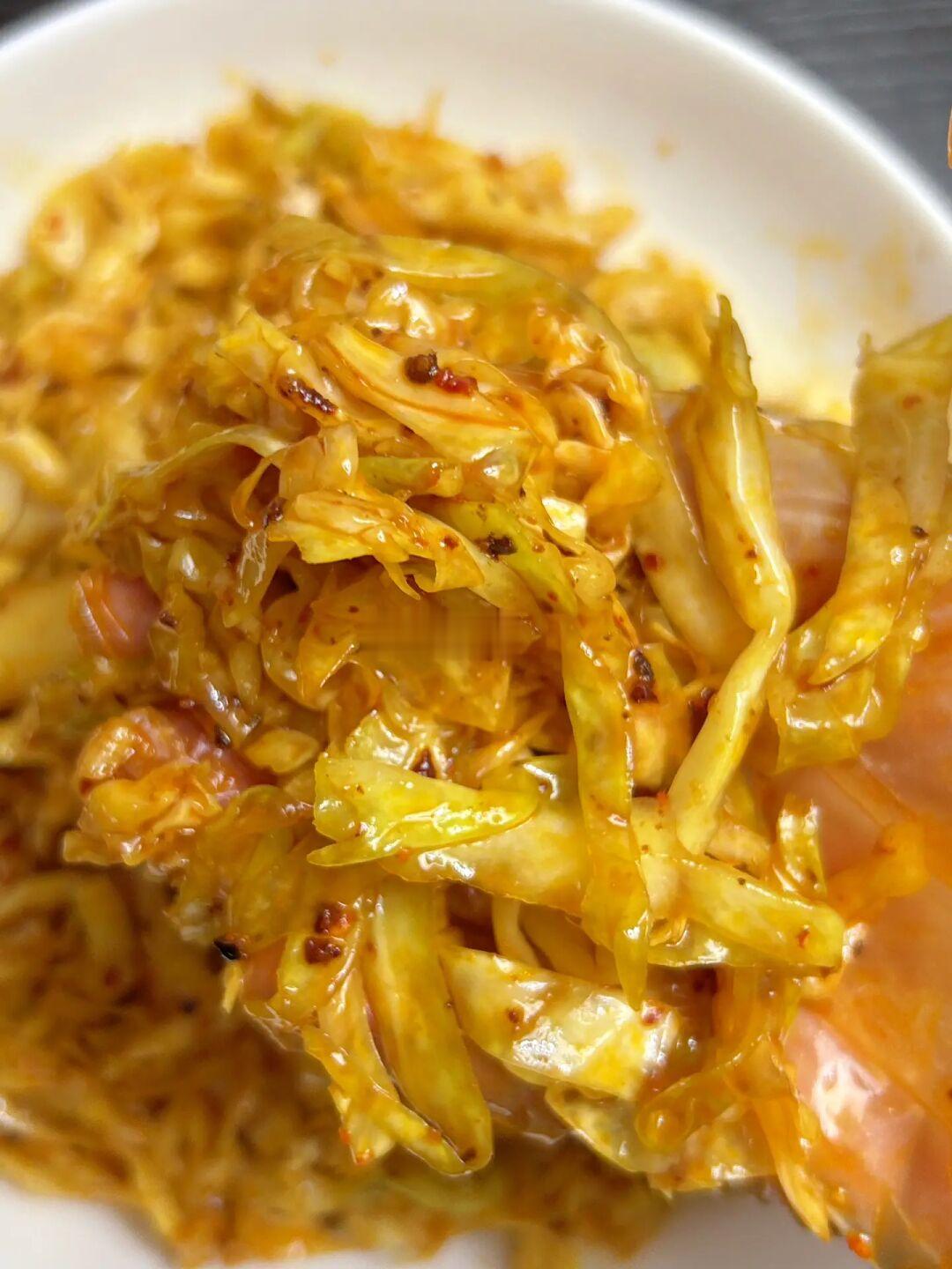 路边摊臭豆腐包菜被我做出来啦! 就是那个味儿! 再也不用馋外面的啦!! 做法也很简单! 1⃣️包菜切丝,加入4勺盐抓匀腌半个小时,用水清洗几遍之后挤干水分装盘备用; 2⃣️小锅里加2勺粗辣椒面、1勺辣椒粉,加入油炸香关火,蒜和水一起打成蒜水; 3⃣️包菜上加入刚刚的辣椒油,再加入蒜水、2勺生抽、1勺盐、2勺醋、1勺白糖拌匀 完成✅ 真的好绝!! 吃不完可以放冰箱冷藏!