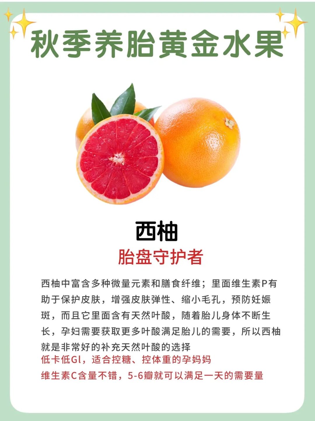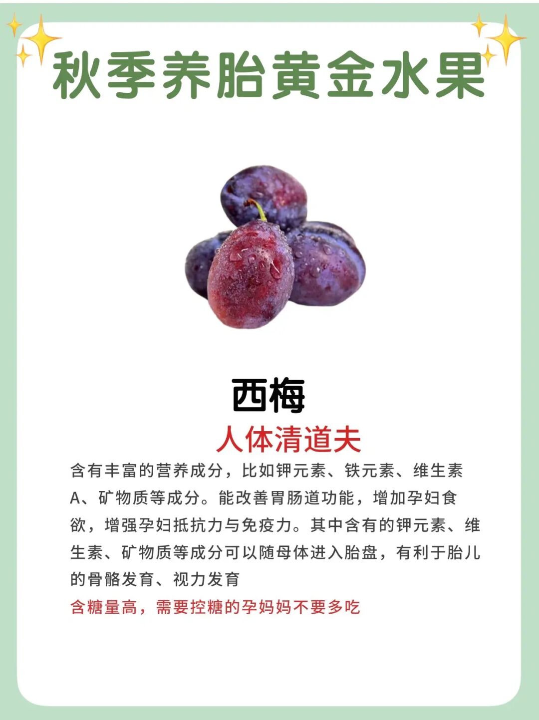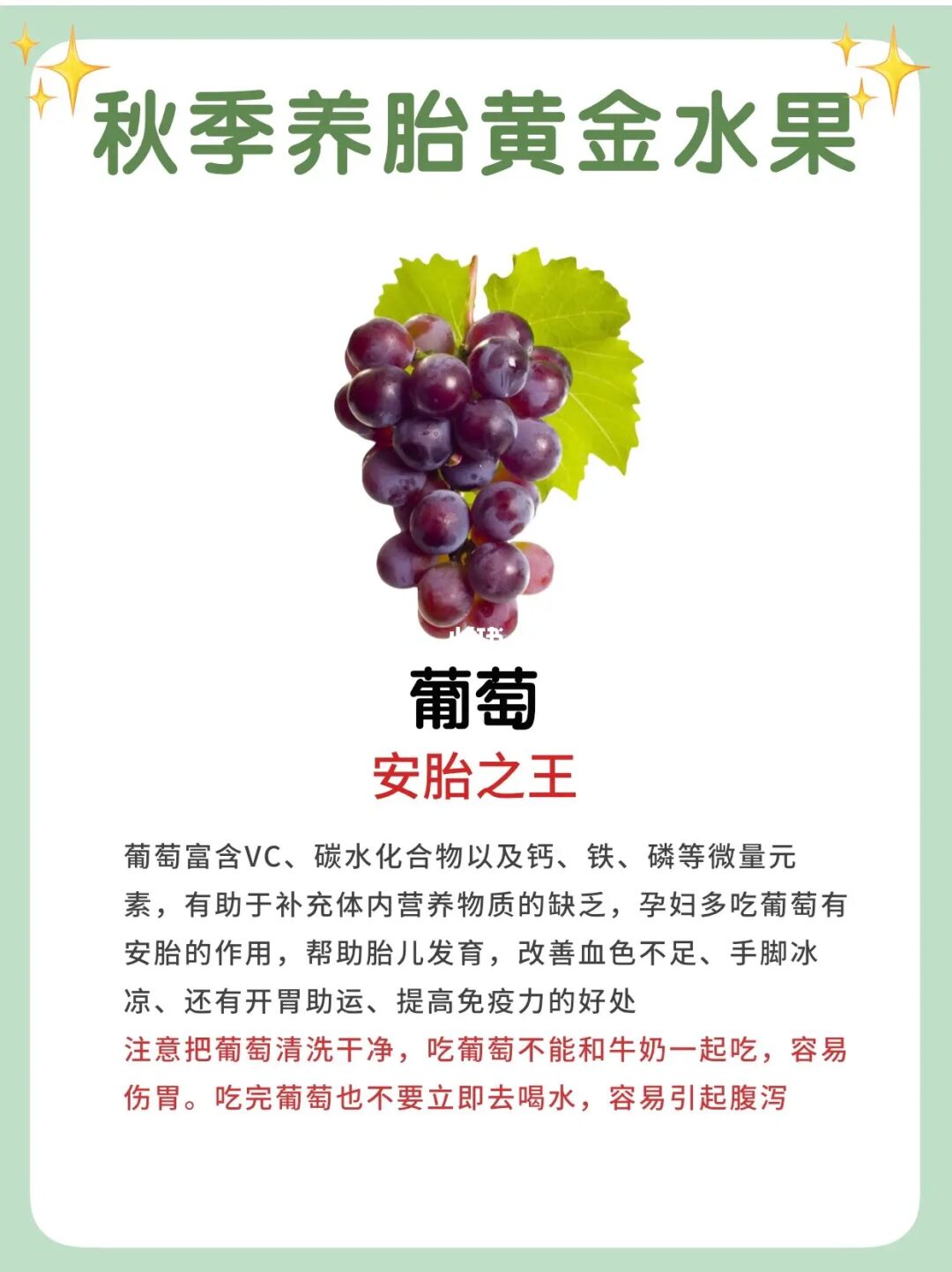 💁♀️之前好多姐妹都在问我:怀孕的时候吃了什么我家宝宝眼睛👀那么大,头发那么黑 我吃得最多的就是水果,我一天水果真的都没断过,尤其是葡萄、苹果、椰子 所以今天给各位正在孕期的姐妹,整理出来了秋季养胎黄金水果 姐妹们!可以参考一下哦~ 注意,控糖的姐妹有些水果要少吃哈……