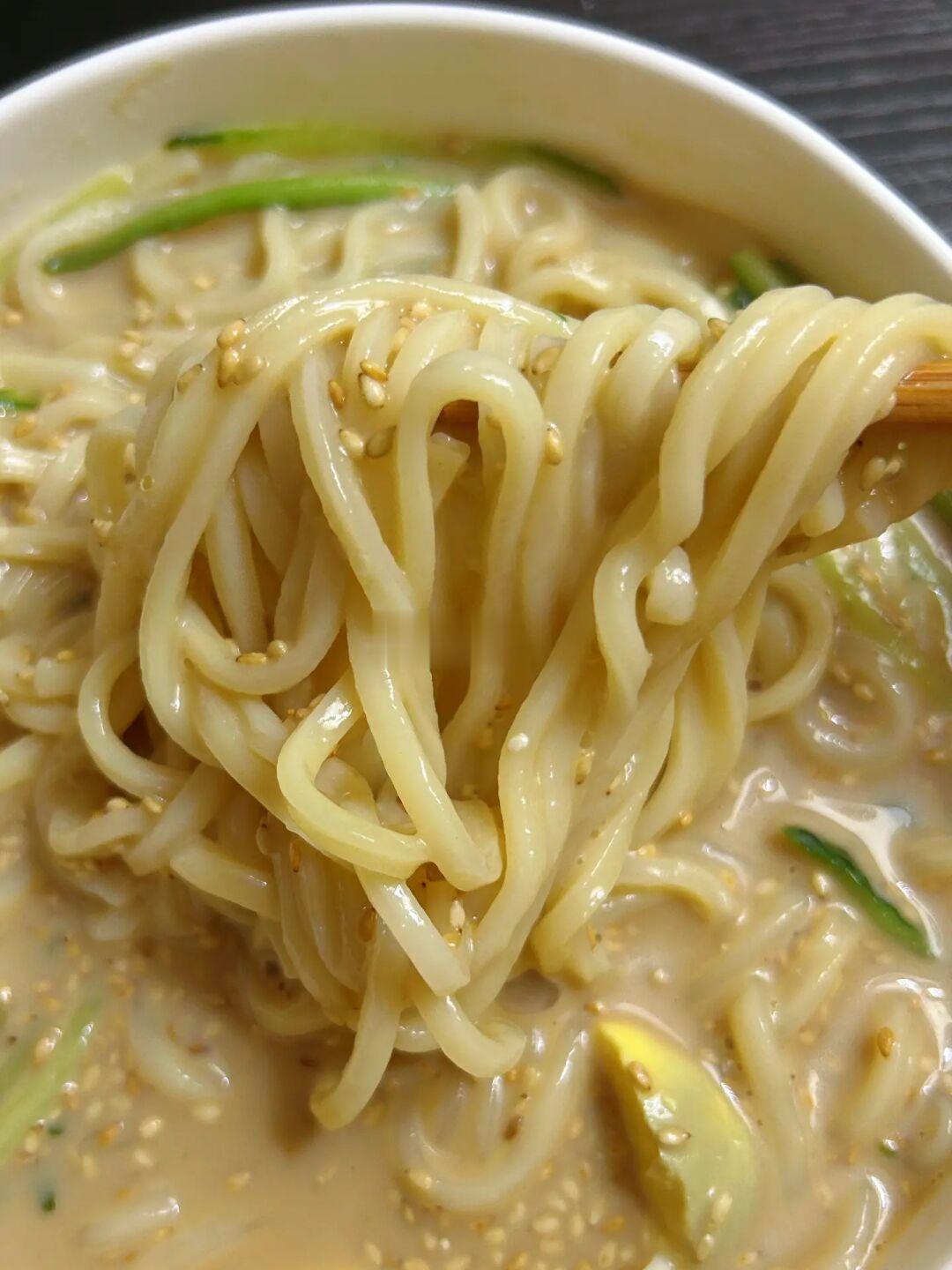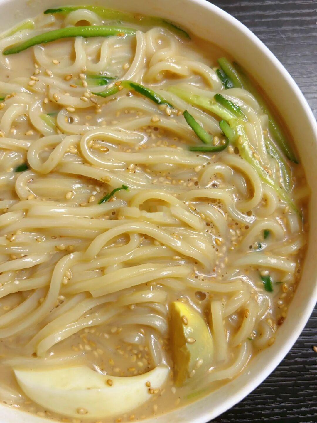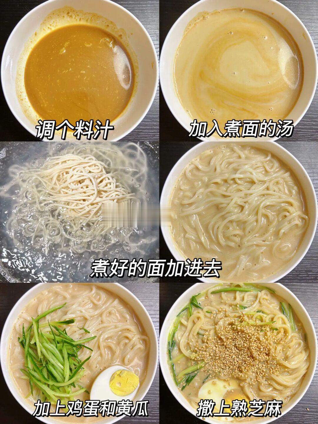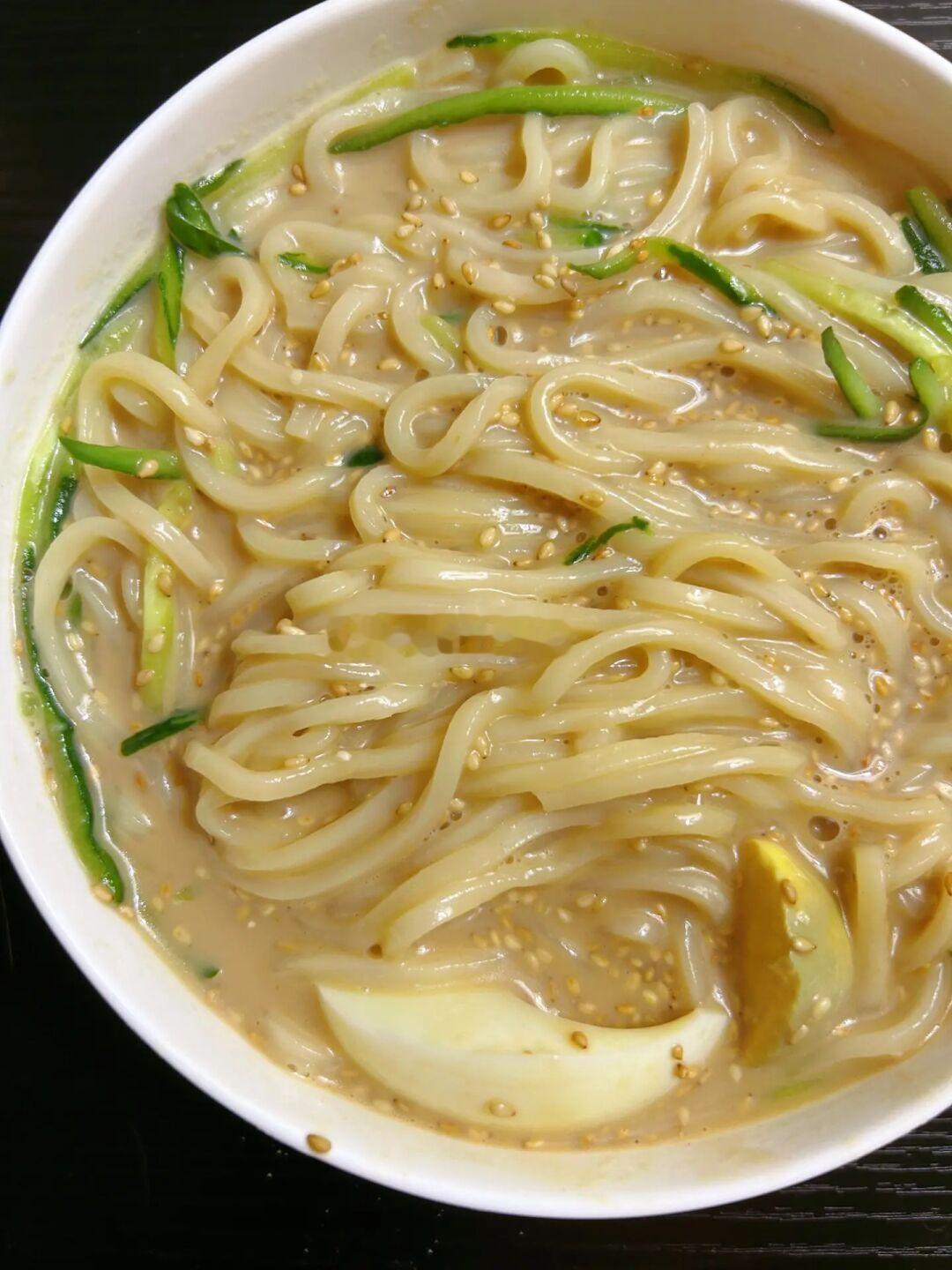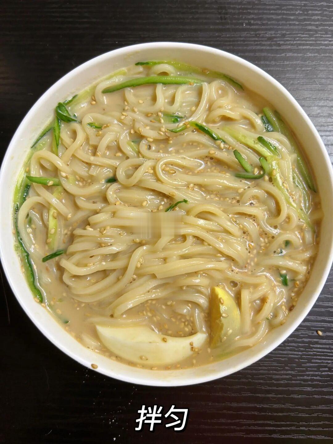 这个豆浆面真的好吃 一点也不黑暗 姐妹们可以试试🤣 1⃣️碗里加入1勺花生酱、1勺盐、1勺糖、2勺生抽、4勺白醋,倒入250ml豆浆; 2⃣️煮面条,把煮好的面条加入碗里,加上鸡蛋和黄瓜丝,再撒上熟芝麻拌匀就好啦!! 完成✅ 真的香! 打开新世界大门!