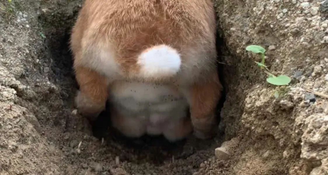 宠物兔挖土三年后变肌肉壮兔 ​​​