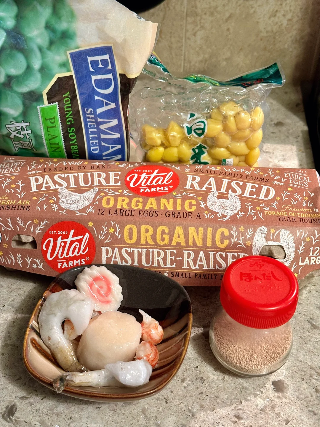 可选:虾仁,竹轮,扇贝,毛豆,白果,香菇。