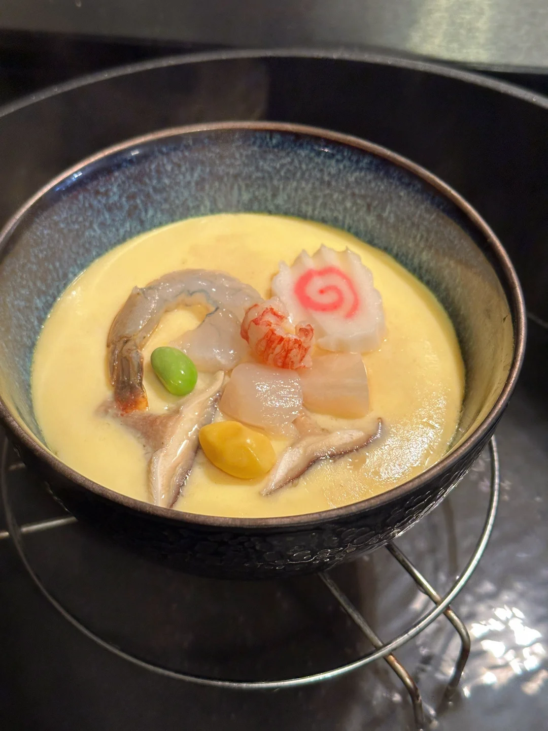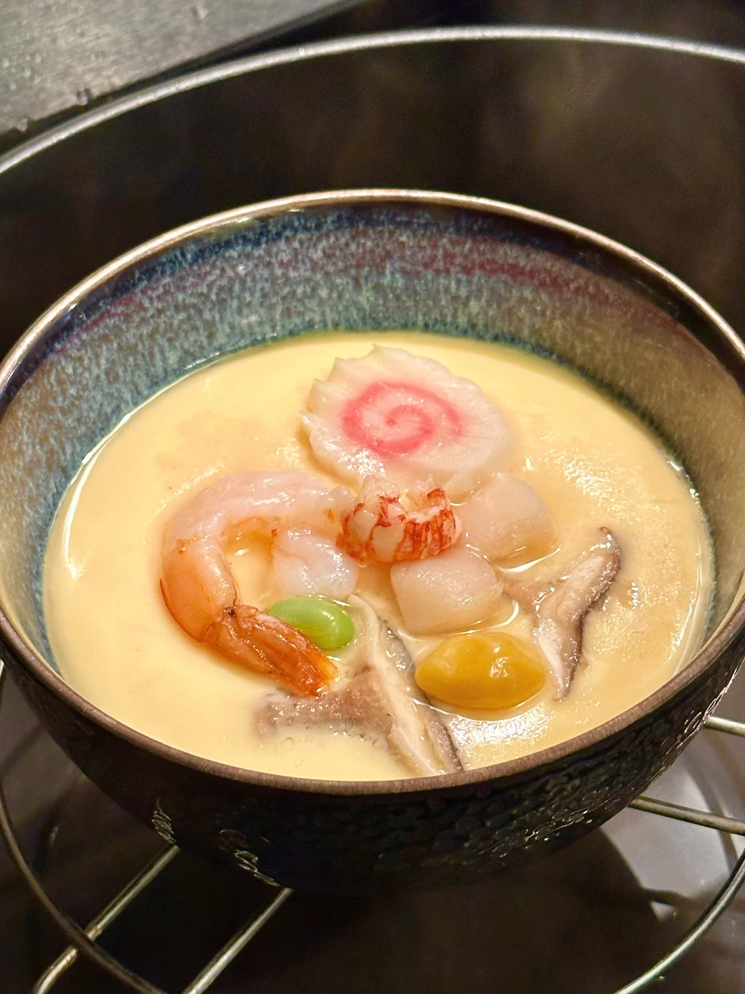 每次去日料店,即使后头有不少好菜等着,也无法拒绝刚开餐时端来的茶碗蒸。小小一盅,蛋羹细腻如布丁,往下挖有不少鲜美的食材,而且暖暖的吃下去很舒服~