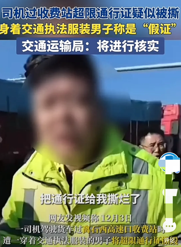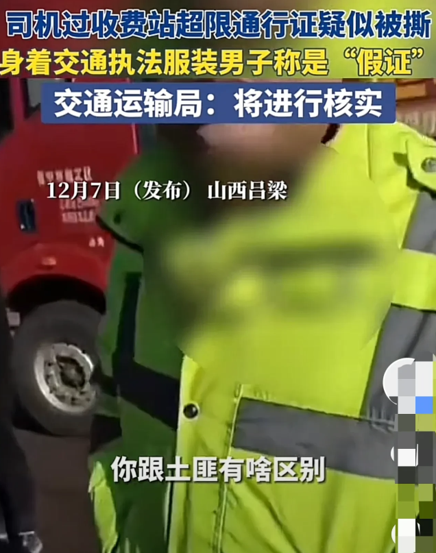 看到视频后,太令人气愤了,如果认为卡车司机的超限证是假证,可以核验,为什么要给人家撕毁呢?太把自己当回事了!你没见过这样的超限证,并不代表他不存在,也不代表他就是个假证,为什么一定要拿着自己的无知,去衡量本就存在的事物呢?