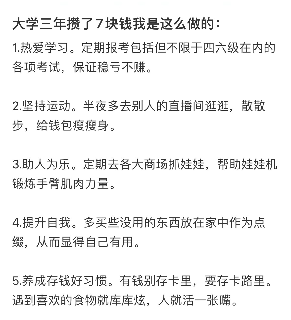 大学三年攒了7块钱我是这么做的