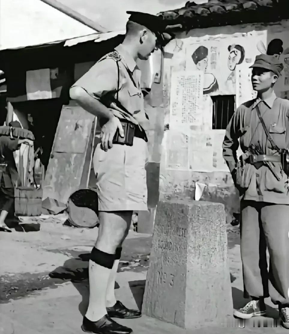 1949年,广东解放之后,深圳与当时还是英国殖民地的香港之间的交界处有一条街道,名唤“中英街”,身形矮小的解放军战士与高大的港英白人警察对峙,然而气势上毫不逊色,这一幕被美国摄影师拍下。