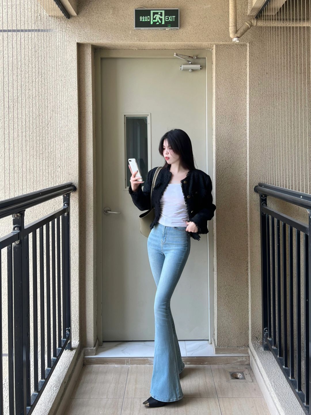 休闲穿搭 一周穿搭不重样 早春穿搭 喇叭裤