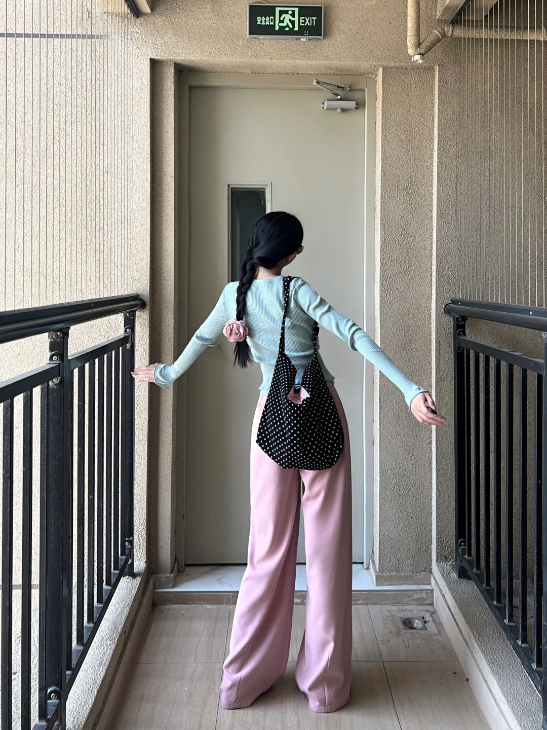薄荷绿开衫套装➕桃子粉凉凉裤!