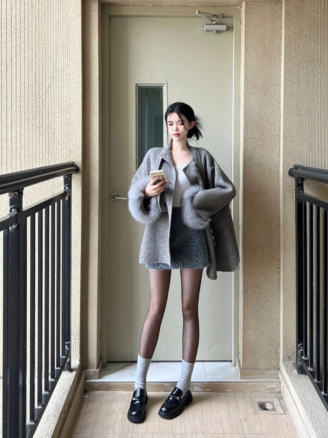 新年穿搭 贵气感 灰色外套 财阀千金穿搭 格雷系穿搭 这个模板有点东西