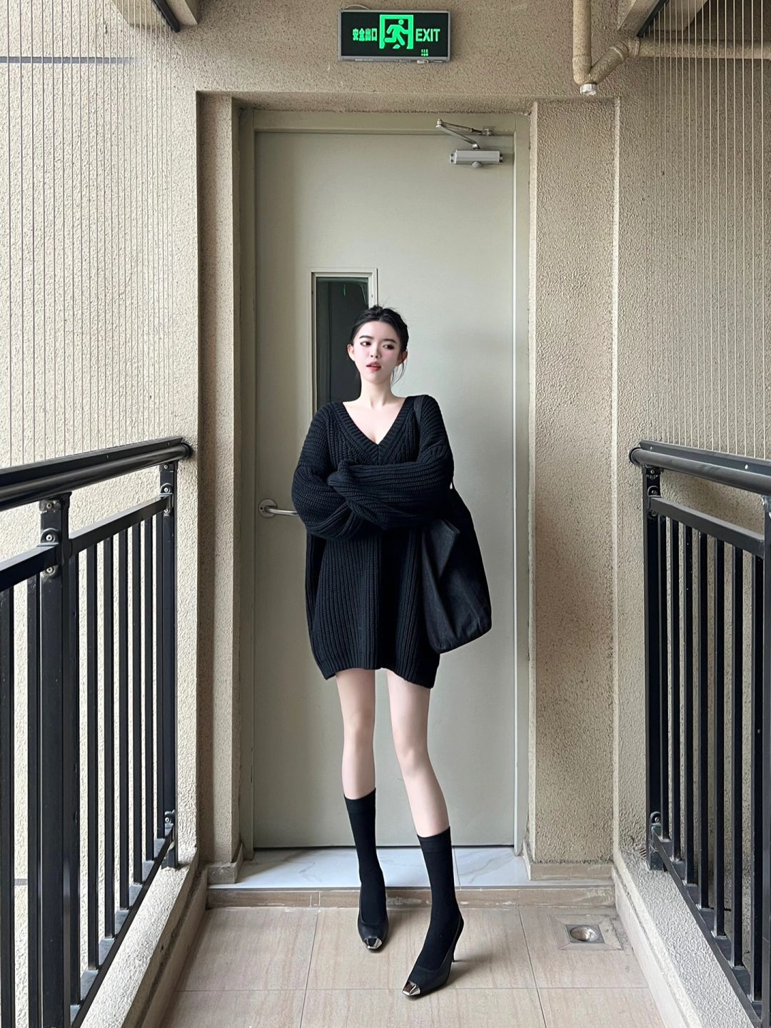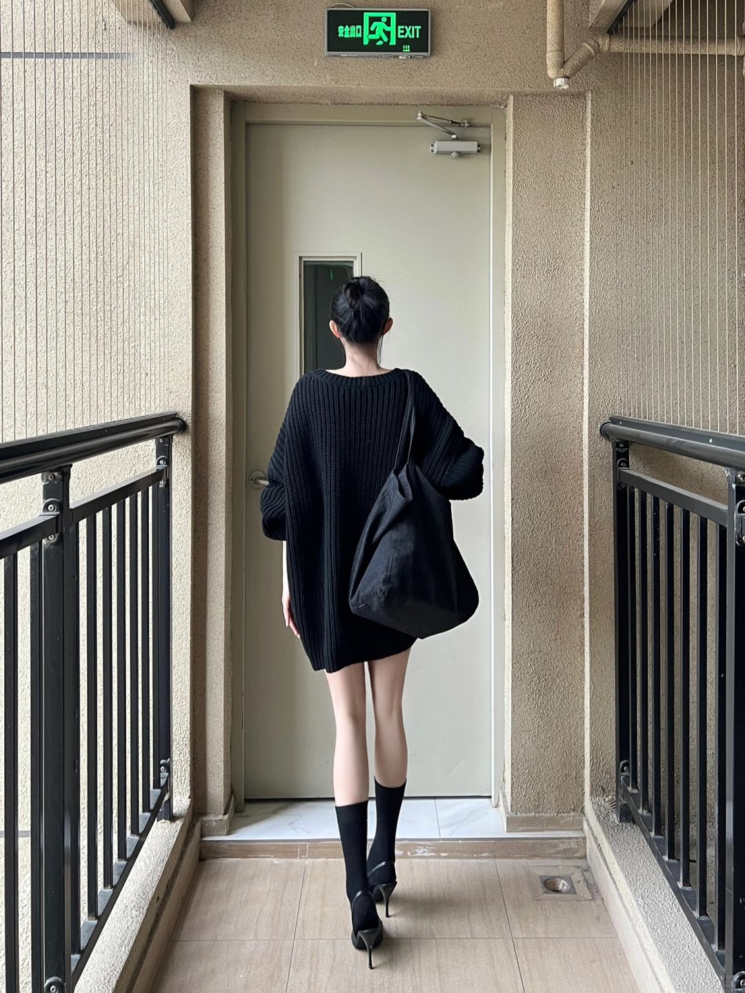 腿精女孩的冬日氛围感: 一定少不了宽松大毛衣的!