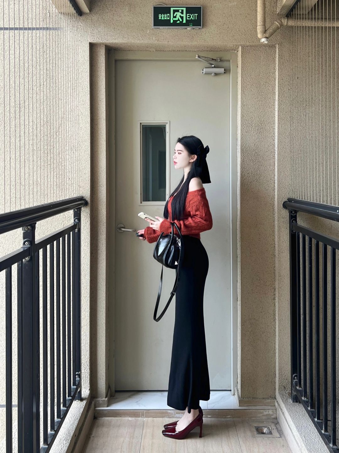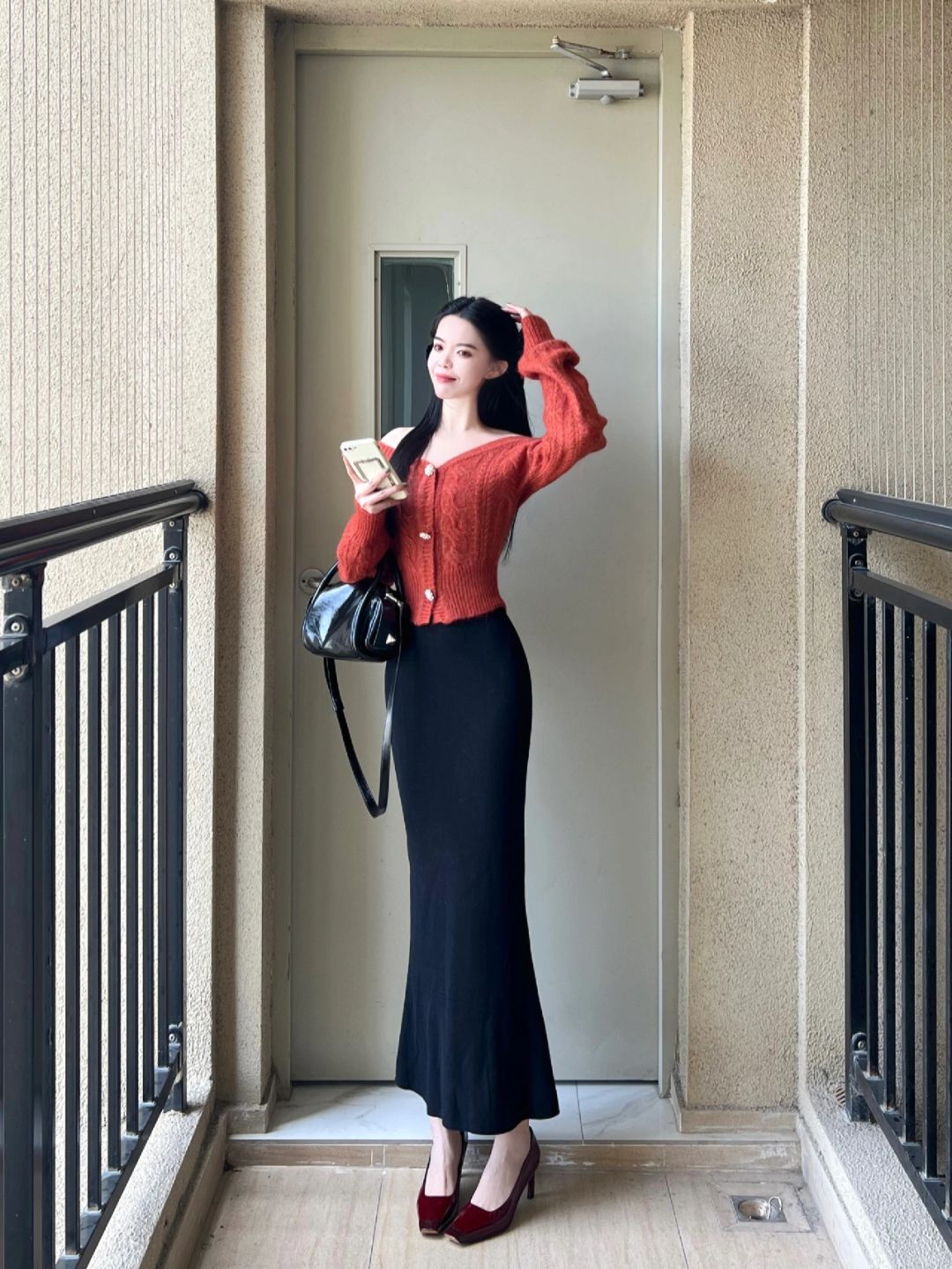 橘红色露肩毛衣➕鱼尾半身裙!