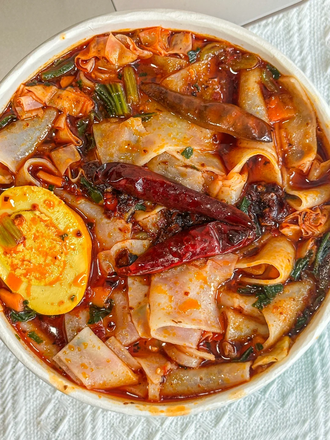 🥓麻辣牛肉:面皮吸满了汤汁,一整个香辣爽口!巨香巨上头!!里面还有整颗大辣椒!!牛油汤底瞬间唤起食欲,整个就香了个大跟头!好过瘾!爱吃辣的姐妹必冲!