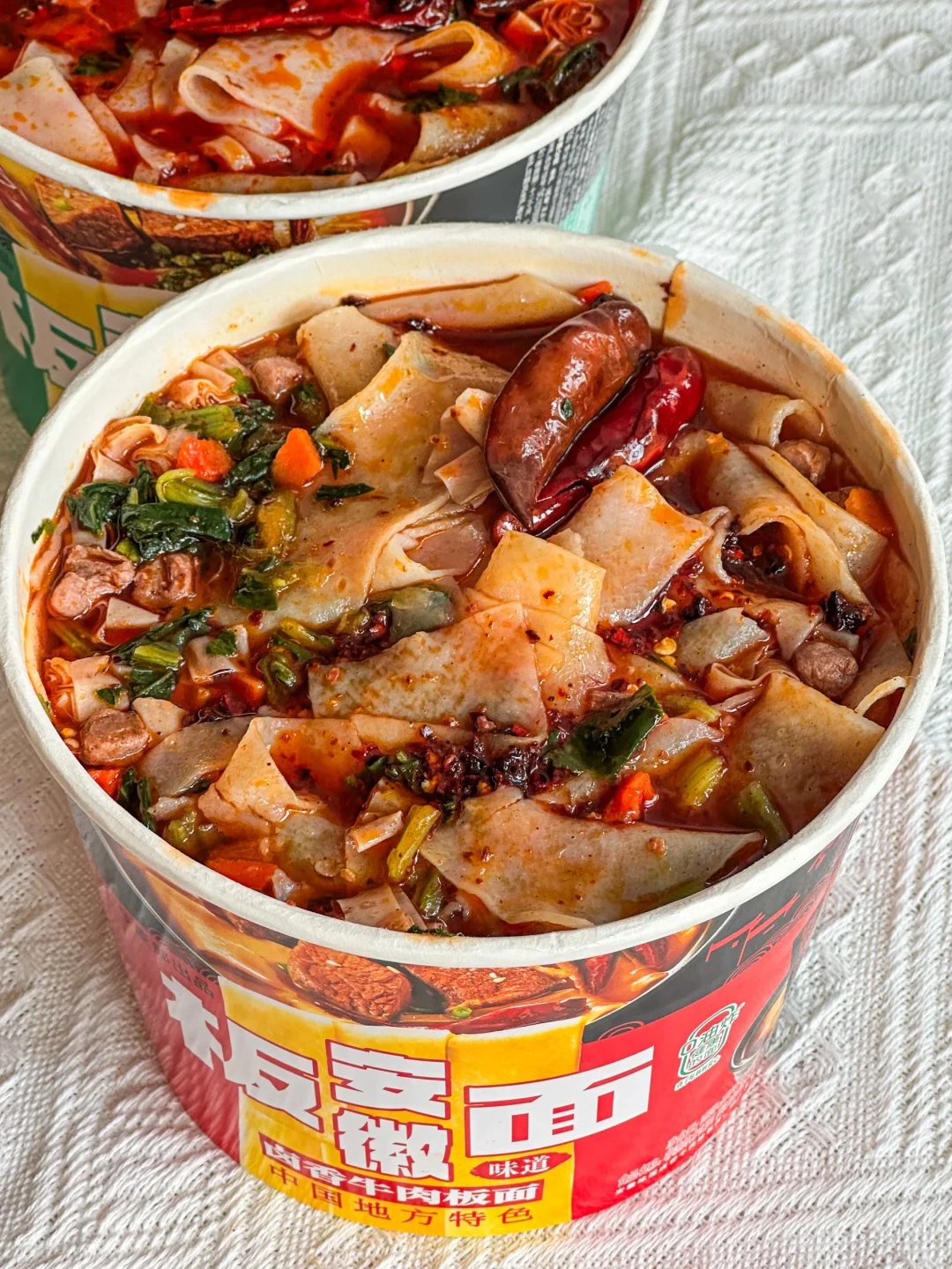 小tips:先泡宽面10分钟,再把水倒掉加料加水,继续焖10分钟。搅拌均匀即可~个人强力推荐要泡15分钟以上,多泡一会儿更入味!!真的太爱这个安徽板面了!!