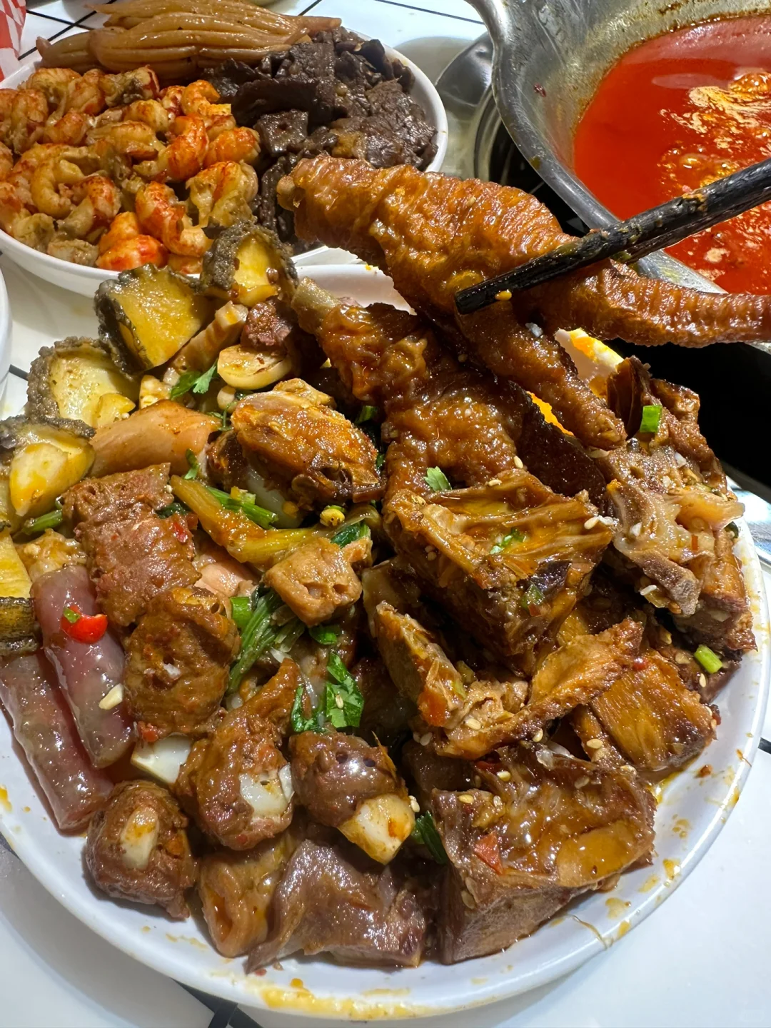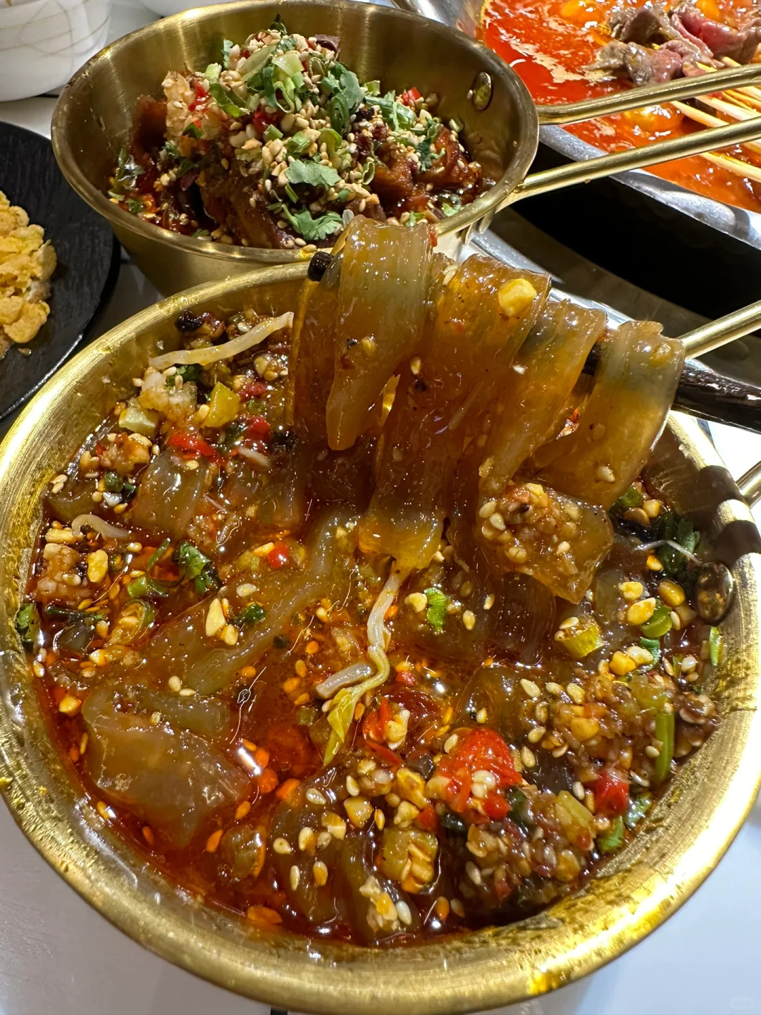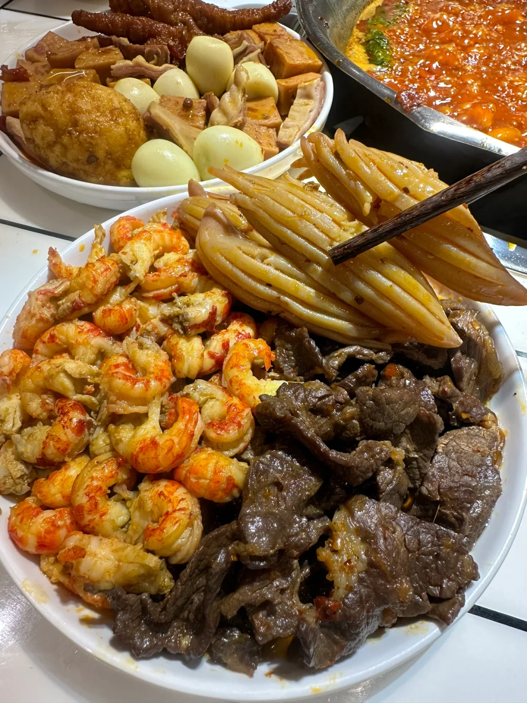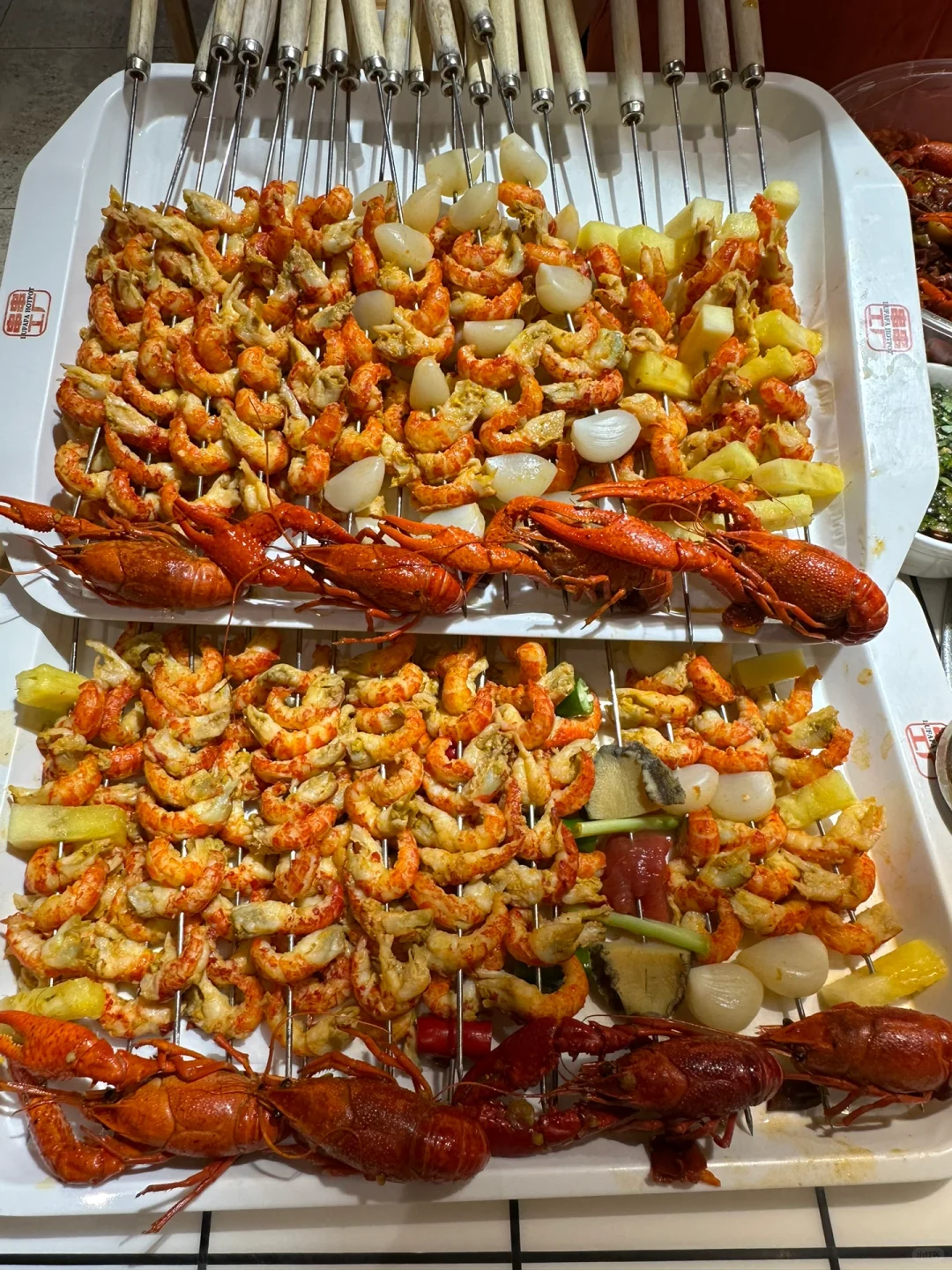 🍢🍢串串的种类超级多,整整一面墙的冰柜装的满满的,荤素全都有,一元一串m5和牛🥩串串,一把一把吃,终于实现了和牛自由啦~菠萝牛肉串、糖蒜牛肉串、紫苏叶牛肉串…串串真的hin丰富,辣锅涮着超入味儿好吃😋