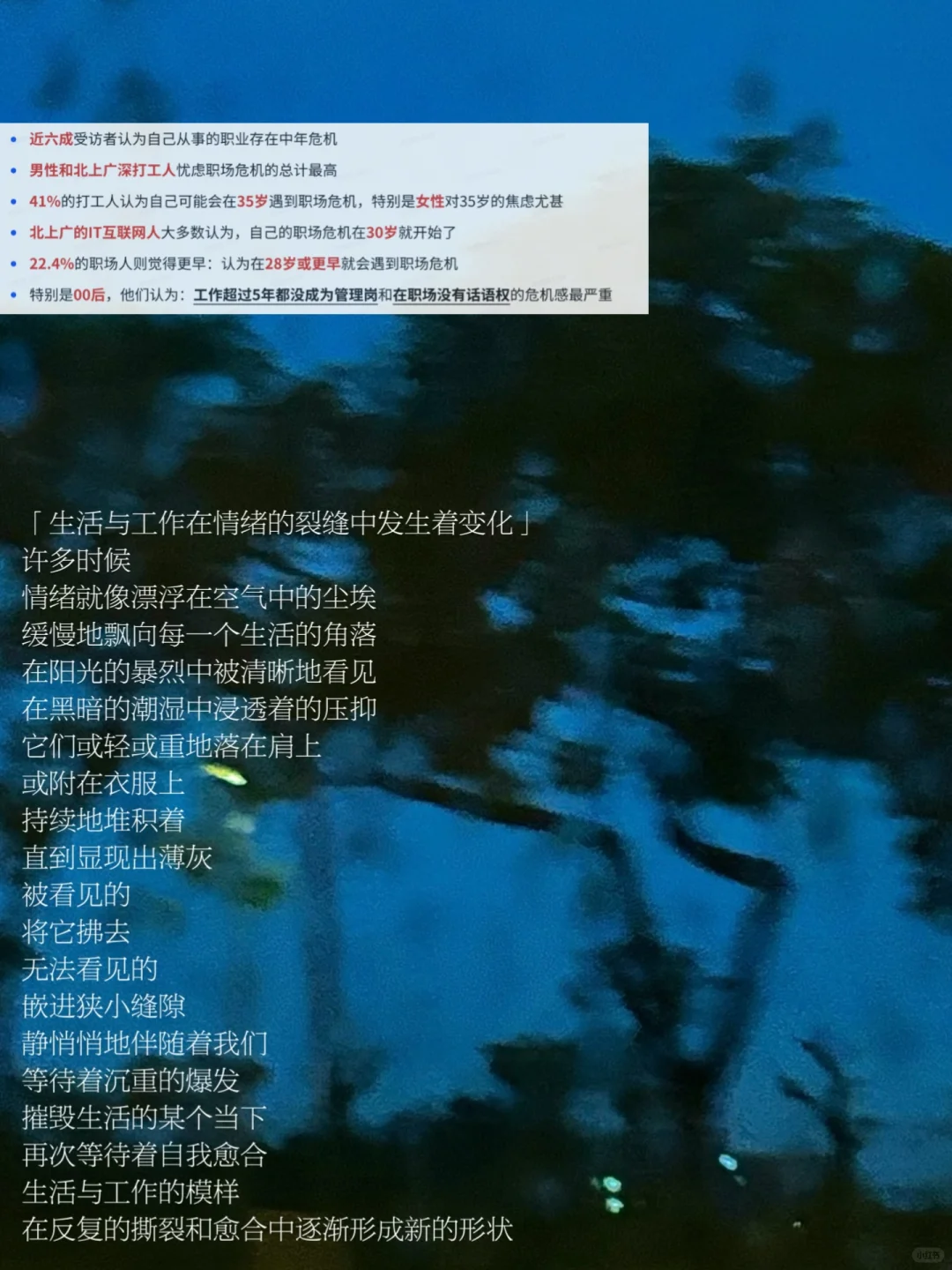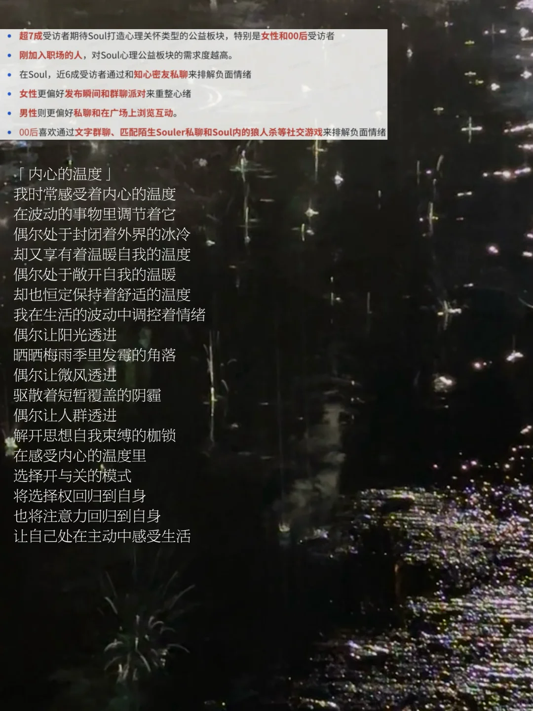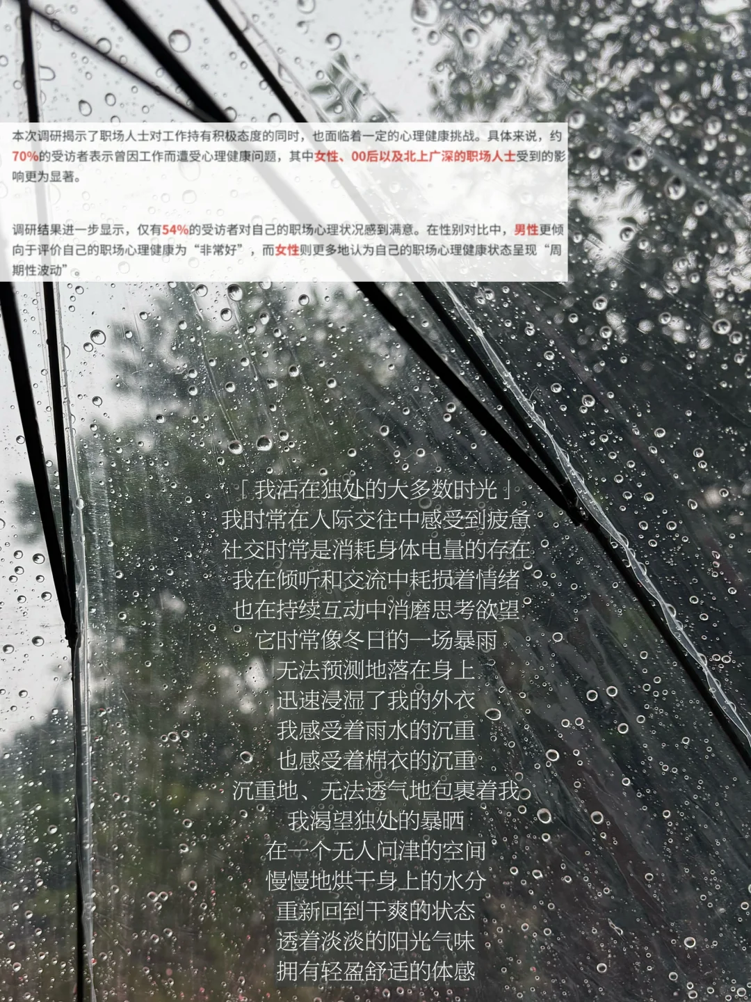 Soul和上海精神卫生中心不仅办了治愈诗歌展,让情绪Problem变疗愈Poem,同时还对不同代际群体的职场人士进行调查制作出《2024年Z世代职场心理健康报告》,关注职场人的情绪和心理问题。希望我们在工作中产生的负面情绪都能被自我看见,然后找到一个明亮的出口,去晒透暗暗发霉的情绪。