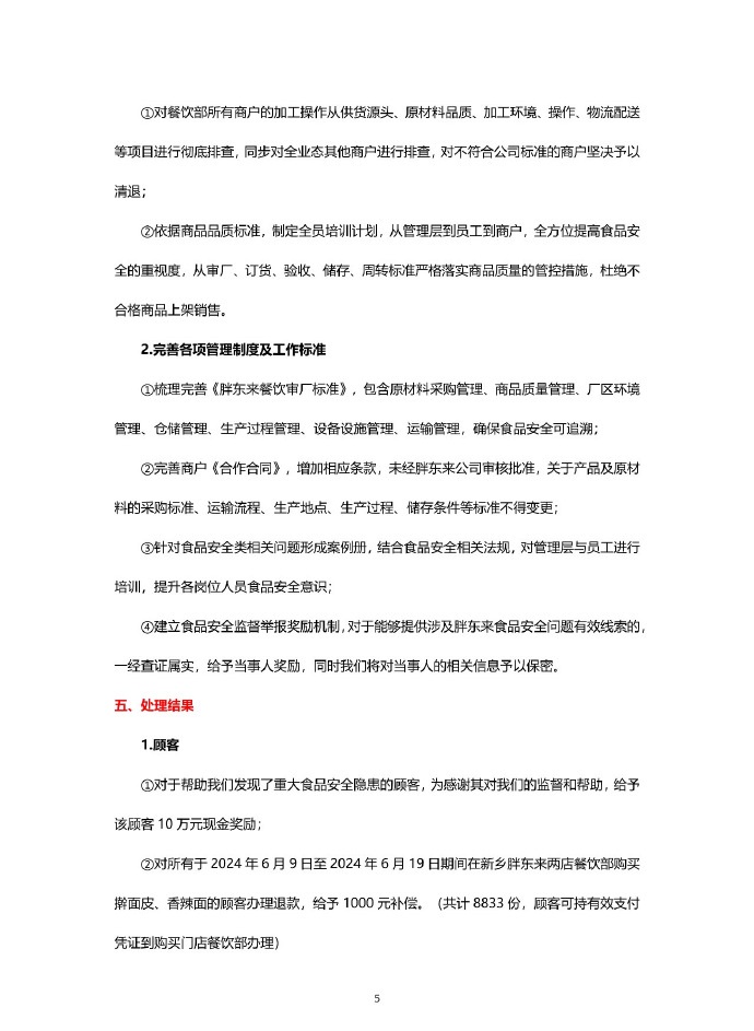 一份八块钱的擀面皮,让胖东来赔了八百多万。起始原因有客户拍到新乡胖东来联营餐饮“擀面皮”加工场所卫生环境较差,于是在某平台曝光。胖东来知道后展开调查,与涉事的联营商户解除合同。并给举报者奖励10万,给买了擀面皮和香辣面的客户每人退款+补偿1000元(6.10-6.19期间共卖出8833份擀面皮和香辣面) 胖东来积极处理问题,连夜发布处理结果、解决方案。这才是教科书式公关!
