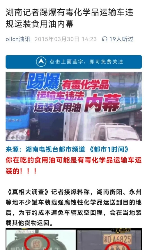 油罐车混装食用油,原来在2015年和2011年都有过报道。