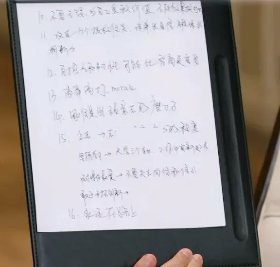 而此时,董老师整理了一下手中记录的笔记纸张,拿起,看着镜头,说道: