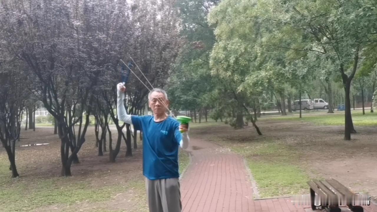 #风雨无阻,依旧会坚持的事是什么?#晨练大爷自拍学抖空竹!