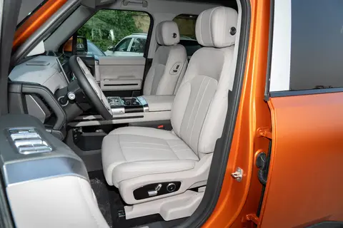 车内基本上都做了软包处理,搭配金属饰条,质感很到位。座椅用的是 Nappa 真皮,坐上去有 “云感”,舒适度不错,还支持通风、加热和按 摩功能,长时间开车也不会觉得累。更贴心的是,第二排右侧座椅还带电动腿托,能延伸到 500 毫米,搭配可折叠的小桌板和 Lexicon 音响,比坐飞机的商务舱还舒服。
