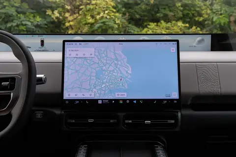二、内饰反差感拉满:科技与实用并存拉开车门,车内的设计会带来强烈的反差感。首先映入眼帘的是 35.4 英寸的贯穿式 “天际屏”,横在中控台上方,视觉冲击力超强。一开始我还担心这么大的屏会不会反光,实际用下来发现完全多虑了,就算是大太阳天正午,屏幕内容也看得清清楚楚,分辨率很高,触控反应也很灵敏。