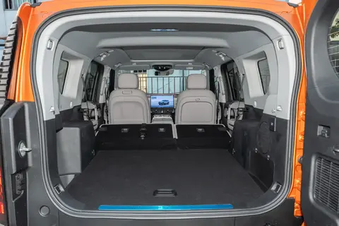 空间表现也是一大亮点,5 座和 6 座两种布局能满足不同需求。6 座版采用 2+2+2 布局,第二排独立座椅之间的间距有1100 毫米,中间过道走起来很顺畅;第三排的膝部空间也很大,成年人坐中短途完全不会有蜷腿的局促感。5 座版后排放倒后能形成2195 升的纯平空间,铺个床垫就能当床车,露营时不用额外带帐篷,实用性很强。
