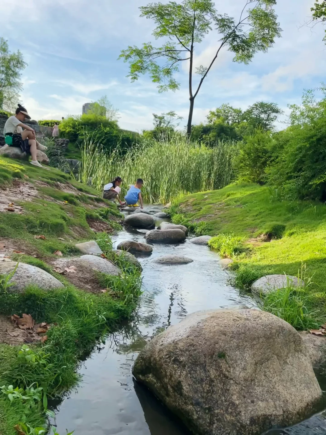 🉑️溯溪玩水💦可从北门进,就在紫阳阁旁边,一条人工小溪,是流动的活水哦~水质还算清澈,