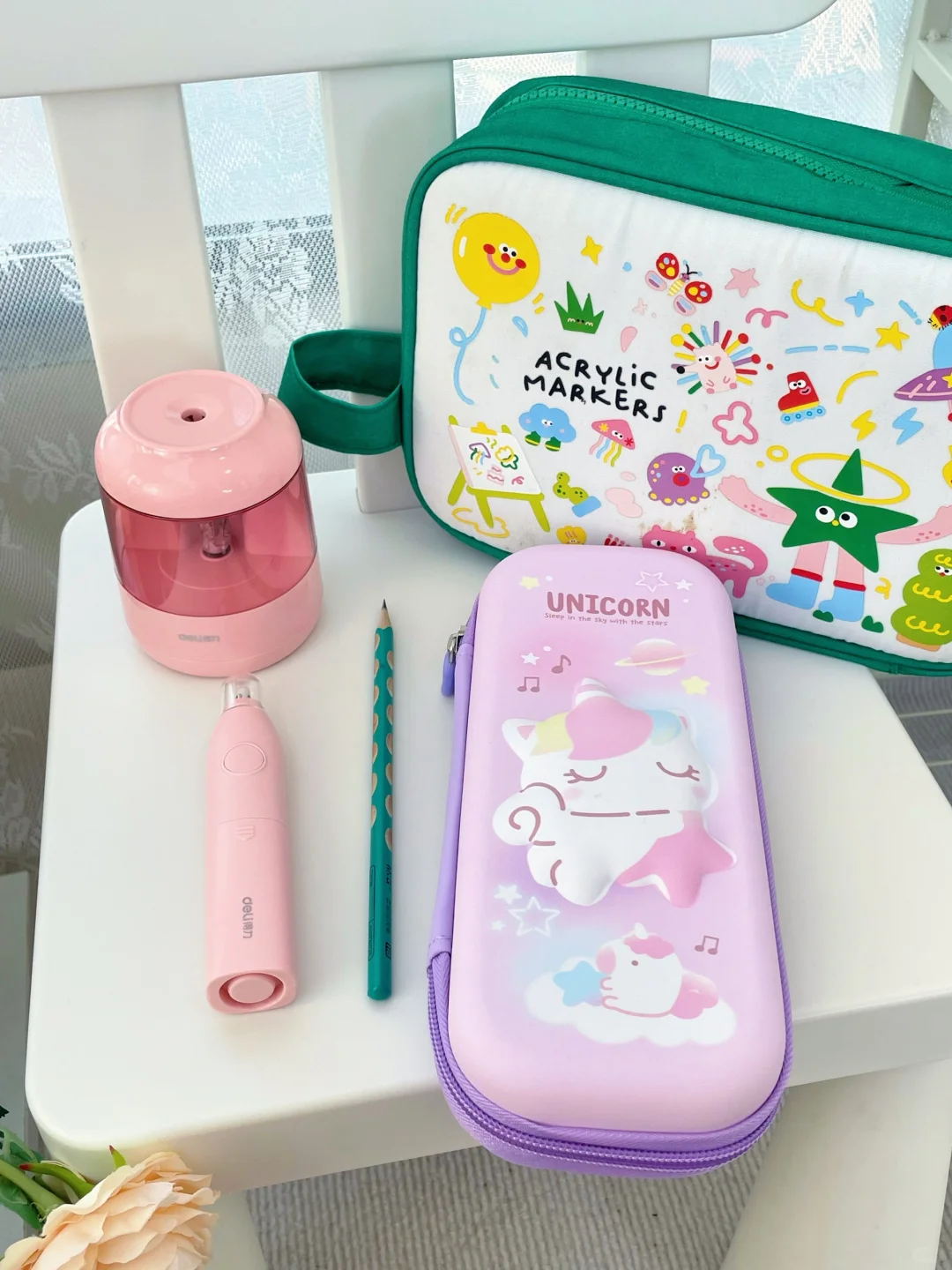✅学习用品文具盒、铅笔✏️、自动橡皮擦、自动削笔器、水彩笔。这些都是每天上学必不可少的。