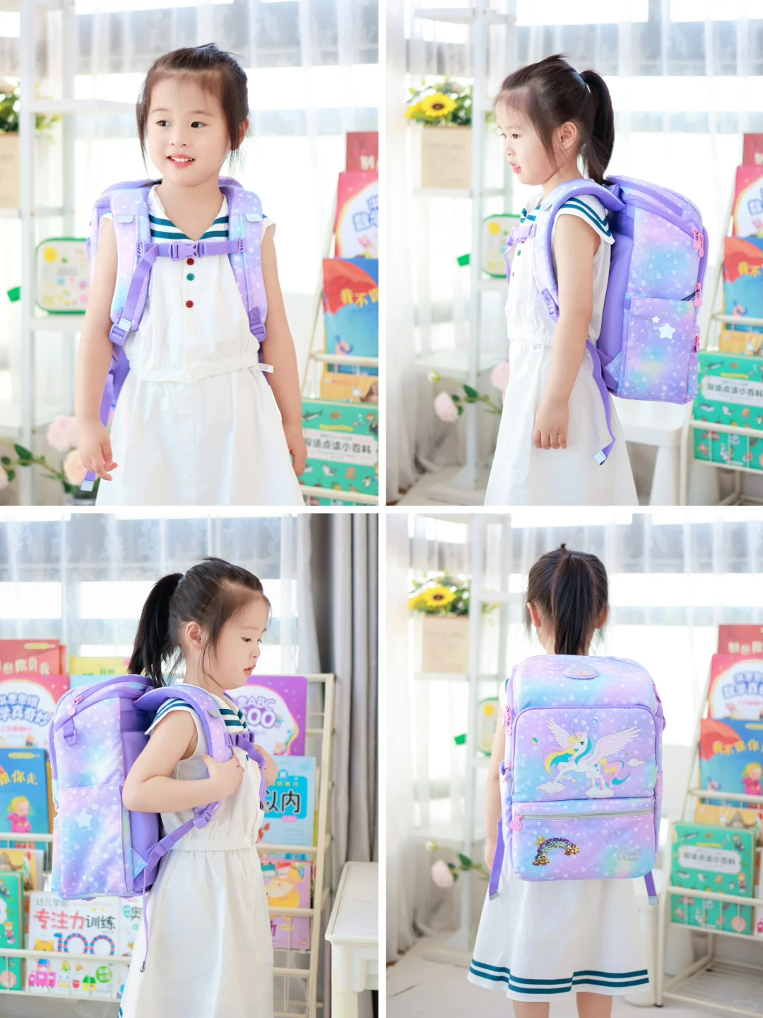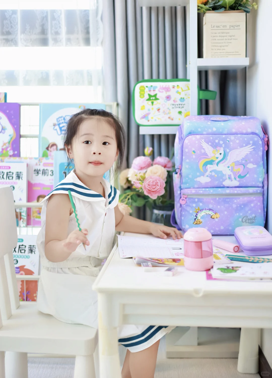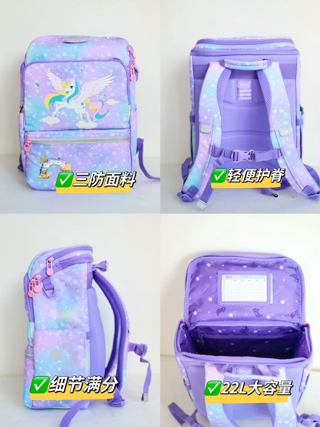 ✅书包是上学必备用品,一定要精挑细选。我选的这款书包容量大,分层多,收纳书本也是轻轻松松。而且书包很轻,背部的护脊铝条很好的贴合小朋友的后背,肩带和腰部都有卡扣固定。书包侧面还有拉链可以扩大容量,三防面料、颜值担当、紫色的独角兽🦄️书包是咕咚的蕞爱💕