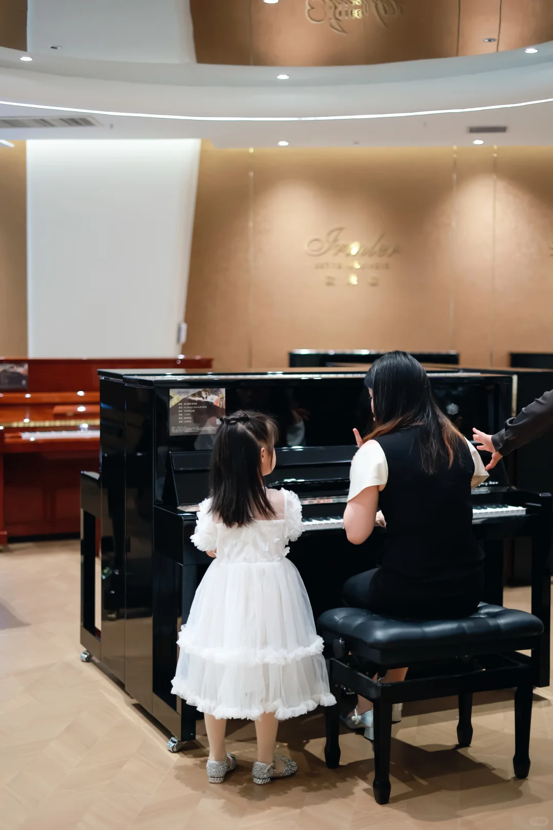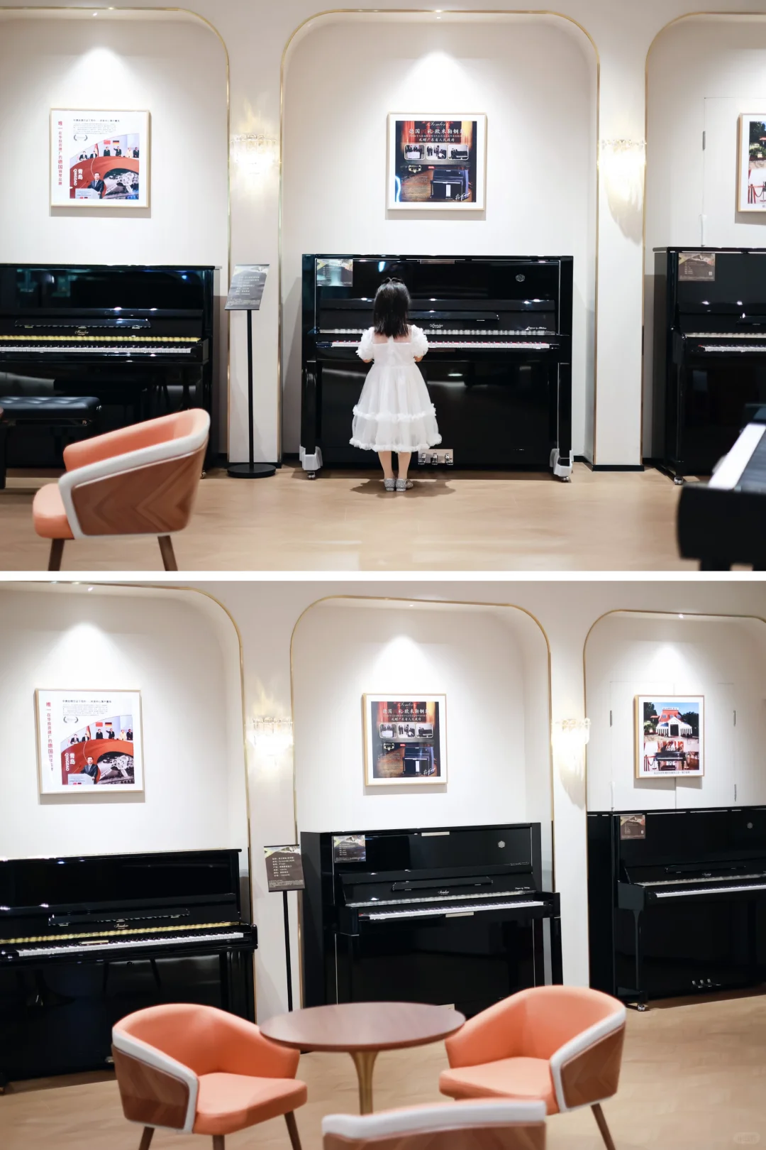 路过一家好有格调的钢琴店,女儿被店内展示的各种钢琴🎹所吸引,突然对我说她好想学钢琴,然后拉着我进店参观试弹体验~