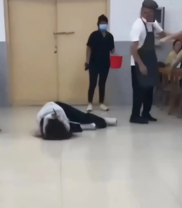 俩同学因为一个座位争执起来,结果男生一挥拳,女生就倒地了。