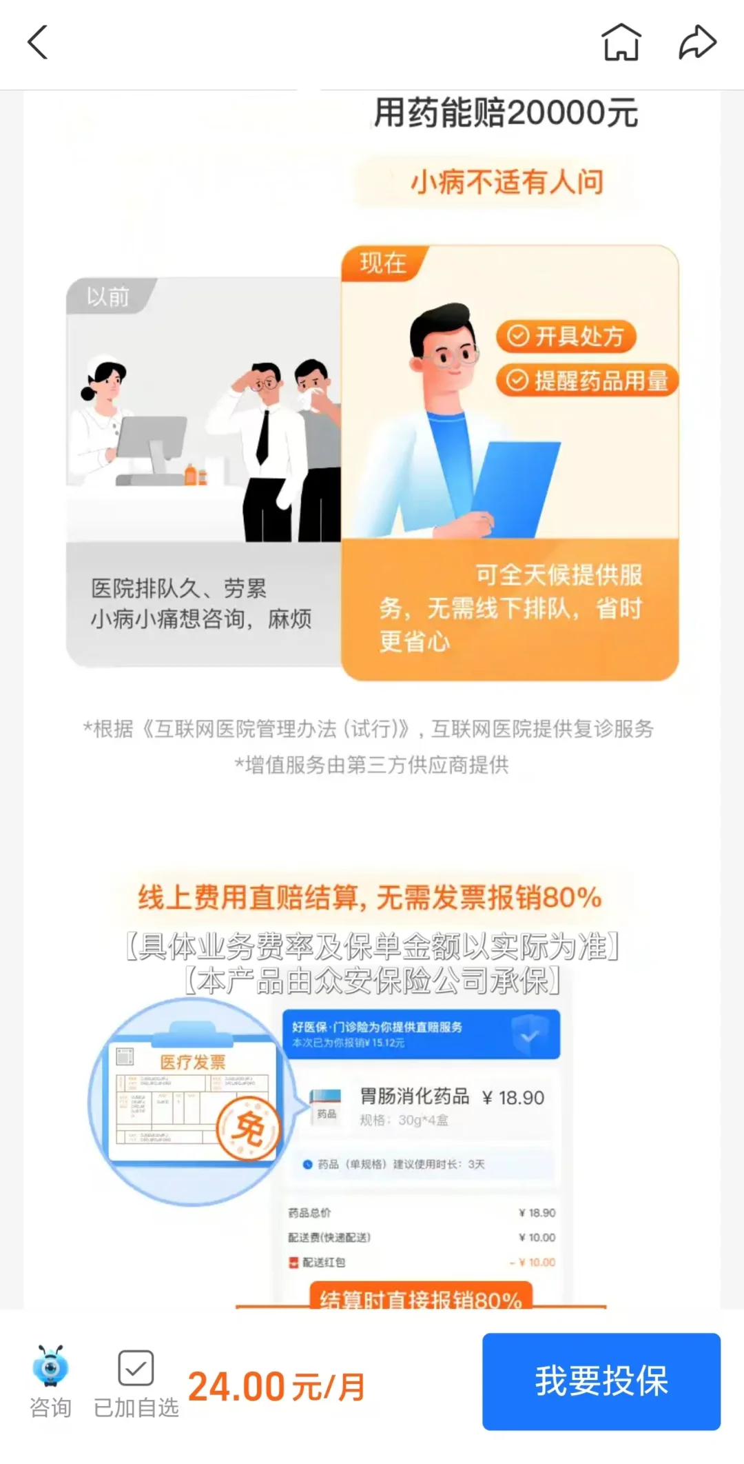 打工人蕞怕生病,压力大,请假难,这都是压在打工人身上的难处,去次🏥非常麻烦,尤其是互联网行业工作节奏快,更是看病难重灾区,很多小病拖久了更严重,所以要学会给自己保障,虽然我们有医保,但报销也要满足不少条件,复杂又麻烦。为了方便快捷又省钱,我可是做了不少攻略,蕞后Zfb里的好医保门诊险脱引而出,打工人容易遇到的感冒发烧、腰肌劳损这类的小毛病去门急诊能报销一半以上,如果不方便请假看病,可以在里面咨〰️询,会根据你的情况开💊,💊费能报销一大半,还能送到家,方便程度拉满了,大家可以去zfb搜门诊险看看看,每个月就一两杯咖啡钱,身体健康有备无患!